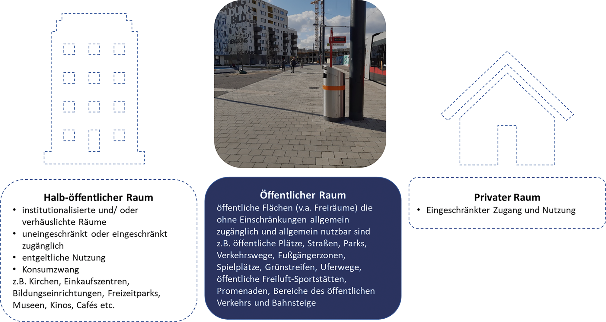 Typischerweise werden öffentliche Räume, wie Parks, Fußgängerzonen und öffentliche Plätze mit der Littering1-Problematik assoziiert (Bateson et al. 2015; Chaudhary et al. 2021; Cialdini et al. 1990). Dieser Fokus lenkt jedoch von der Ressourcennutzung, vom Wertstoffgedanken und der Abfalltrennung ab. Zwar gibt es im öffentlichen Raum vereinzelt Behälter zur getrennten Sammlung, jedoch beschränkt sich das oft auf Orte, die von privaten Betreibern verwaltet werden (z. B. Bahnhöfe, Flughäfen, Einkaufszentren und Museen). Gleichzeitig ist die Dichte an Restmüllbehältern, besonders in innerstädtischen Gebieten, sehr hoch und Gemeinden betreiben einen erheblichen Aufwand, um den öffentlichen Raum sauber zu halten (siehe auch Tab. 2 mit Daten & Fakten zu öffentlichen Abfällen).