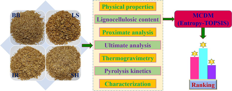 An entropy-based TOPSIS approach for selecting best suitable rice husk for potential energy applications: pyrolysis kinetics and characterization of rice husk and rice husk ash