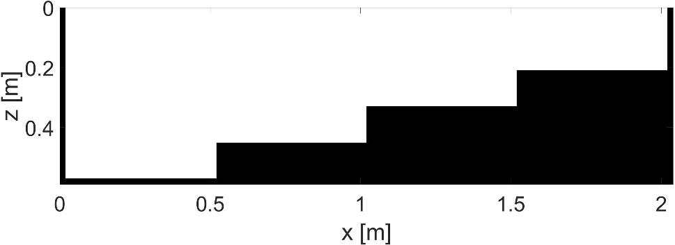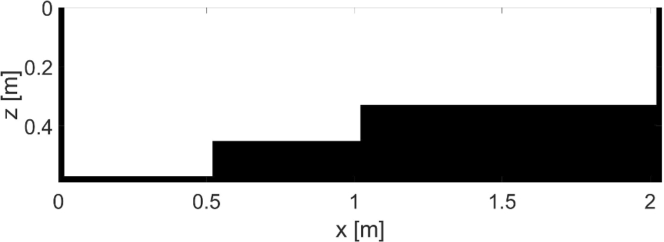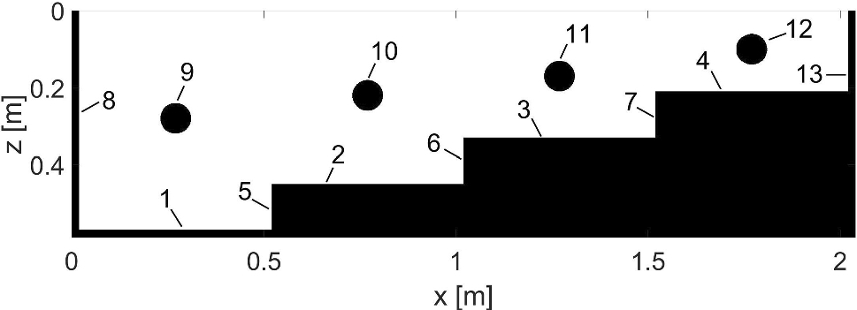 Data processing and imaging of ultrasonic data acquired with transducers is currently mainly done by synthetic aperture focusing technique (SAFT) algorithms [14] operating in time or frequency domain, or by using the closely related Total Focusing Method [15, 16]. In this study, we used the time-domain SAFT algorithm, which is a diffraction stack and creates an image of the investigated specimen by numerically superimposing the reflected signals of single-sided measurements to the imaging points of the reconstructed region. Further details on the SAFT algorithm are described in [17, 18]. A version of the SAFT method using phase evaluation of the measured signal reflections to characterize reflectors has been published by Mayer et al. [19]. The application of SAFT on concrete structures for, e.g., thickness measurements and the detection of defects, such as cracks, delaminations and grouting faults, is presented in numerous studies [8, 17, 20‐27]. The localization of objects embedded in concrete structures by using SAFT, as for example tendon ducts, reinforcement and bore holes, has also been successfully explored [5, 8, 17, 20, 21, 23, 27]. However, SAFT suffers from some limitations since only single reflections of the ultrasonic wavefield are taken into account. Thus, artefacts in the reconstructed image occur due to multiple reflections and mode conversions of the wavefield emanating from reflectors inside the concrete specimen. Due to these limitations, it has not been possible to image, for example, vertically or steeply dipping interfaces as well as complex structures such as steps and lower boundaries of voids. Consequently, SAFT does not allow accurate determination of the geometry and dimensions of complicated scattering bodies in concrete. For instance, the location of tendon ducts can be estimated by using SAFT reconstruction, but both the diameter and shape can not be specified accurately.