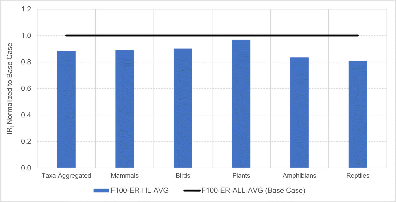 Effect of moving fiber sourcing to ecoregions described as having less “Habitat Loss”