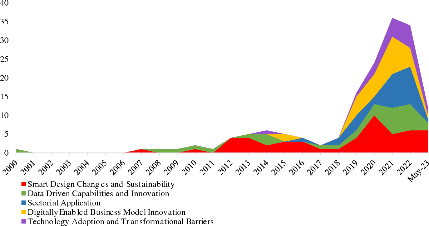 This cluster included 51 studies, which was larger than the other clusters. There is a distinctive use of qualitative research; almost 57% of the studies were case studies based on a single case (55%) or multiple case studies (2%). The effectiveness of the PSS conceptual design is tested in these case studies, and the proposed methods are validated to reach that point (Chiu et al. 2021; Geng et al. 2010). The application of these theories has been demonstrated in industries such as stainless steel manufacturing, crane machines, textile firms, and autonomous vehicles (D. Chen et al. 2015; Z. Chen and Ming 2020; Tseng et al. 2019; X. Wang and Durugbo 2013).