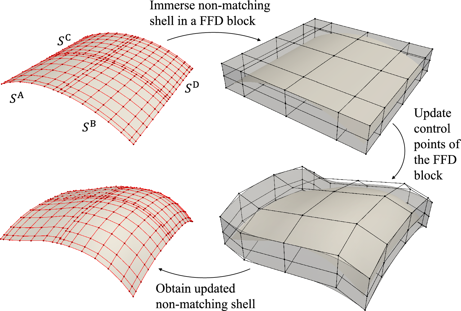 \({\textbf{P}}_{\text {FFD}}\): B-spline control points of FFD block.