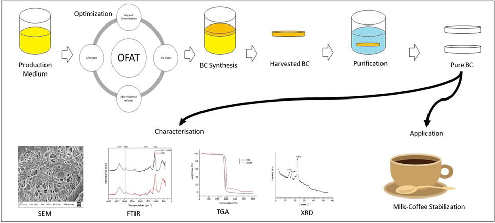 Bacterial cellulose production by Komagataeibacter hansenii utilizing agro-industrial residues and its application in coffee milk stabilization