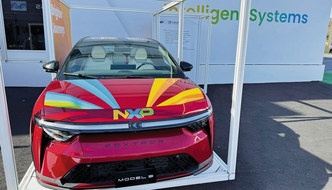 Noch ist der Technologiedemonstrator Foxtron Model B von Foxconn ein reines Konzeptfahrzeug - gesehen am Stand von NXP
