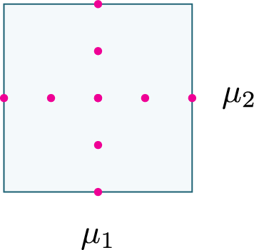 as the nodes and \(\varvec{\mu } \subset [a_1,b_1] \times [a_2,b_2]\). The set of nodes corresponding to the tensor matrix \(X(\mu _1,\mu _2)\) in Fig. 1 are visualized in Fig. 2. This way of sampling in the parameter space is a way to mitigate the so-called curse of dimensionality in terms of the number of snapshots to generate and store.