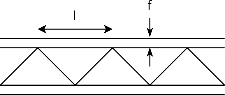Therein, \( k \) is the buckling coefficient that depends on the size of the plate and the restraint, i.e., the edge conditions and the number of wavelengths in the buckling mode. The quantity \( E^f \) is the Young’s modulus of the facesheet material, and \( v^f \) is the Poisson’s ratio of the facesheet material. According to studies performed by Deshpande et al. [33] and Cote et al. [34], the assumption was introduced that the ends of the lattice structure are pin-jointed, which obtained good agreement with experiments. This leads to a value of k= 1 for the buckling coefficient. The quantity \( l \) is the length between two adjacent struts, as shown in Fig. 4.