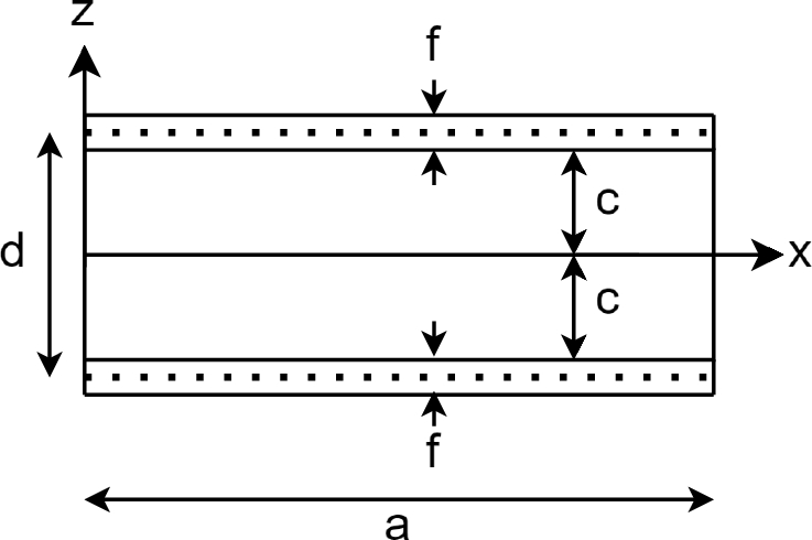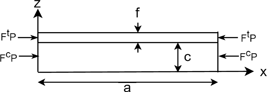 Figure 5 shows a sandwich column of length a with a core of thickness 2c and face sheet thickness f. A cartesian coordinate system is defined at one end of the column, and its origin is placed in the middle of the core. Only loading in the \(x-z\) plane is considered to act on the column which solely causes displacements in the x and z directions designated by u and w respectively. The subscript 0 refers to the middle surface of the corresponding phase. It should also be noted that the rigidities and all applied loadings are per unit width.