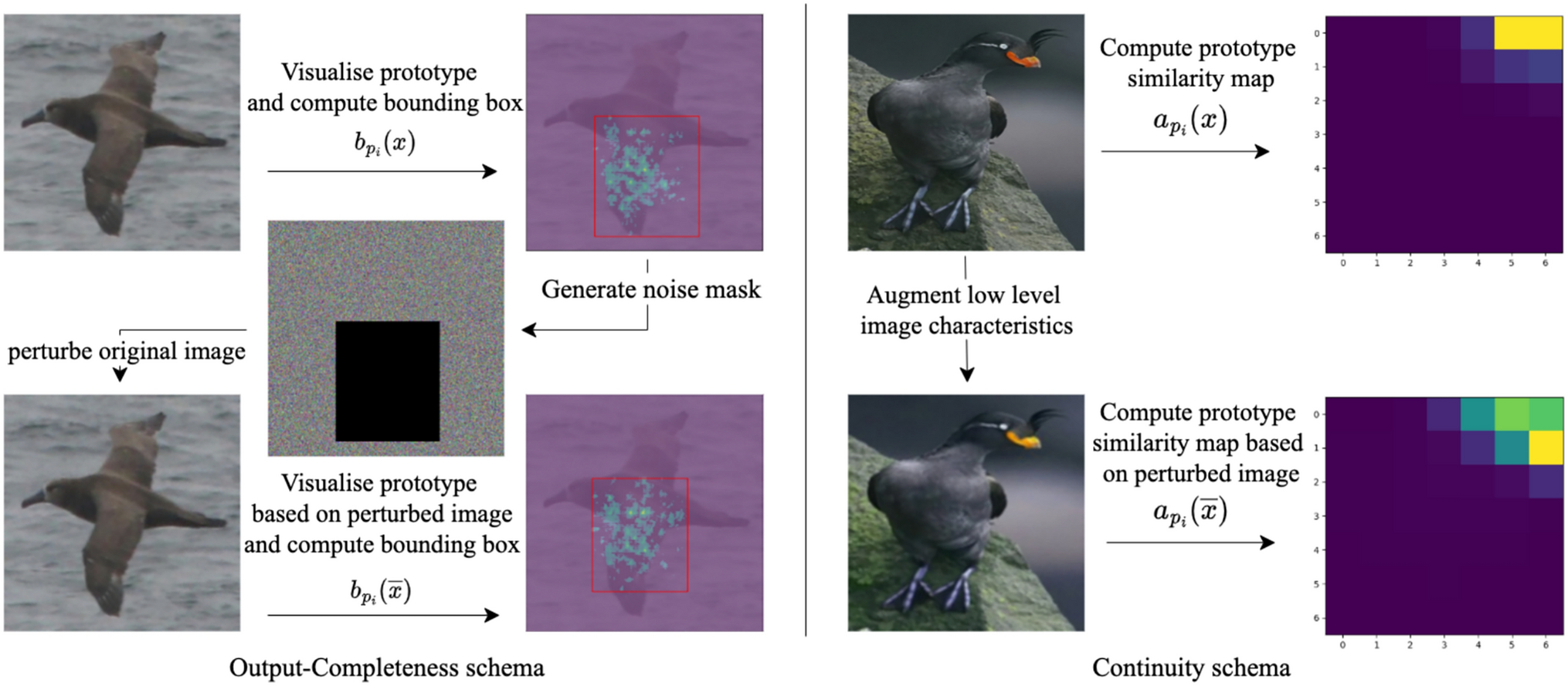 Output Completeness: Evaluates whether the visualization covers all pixels relevant to a prototype by perturbing unhighlighted