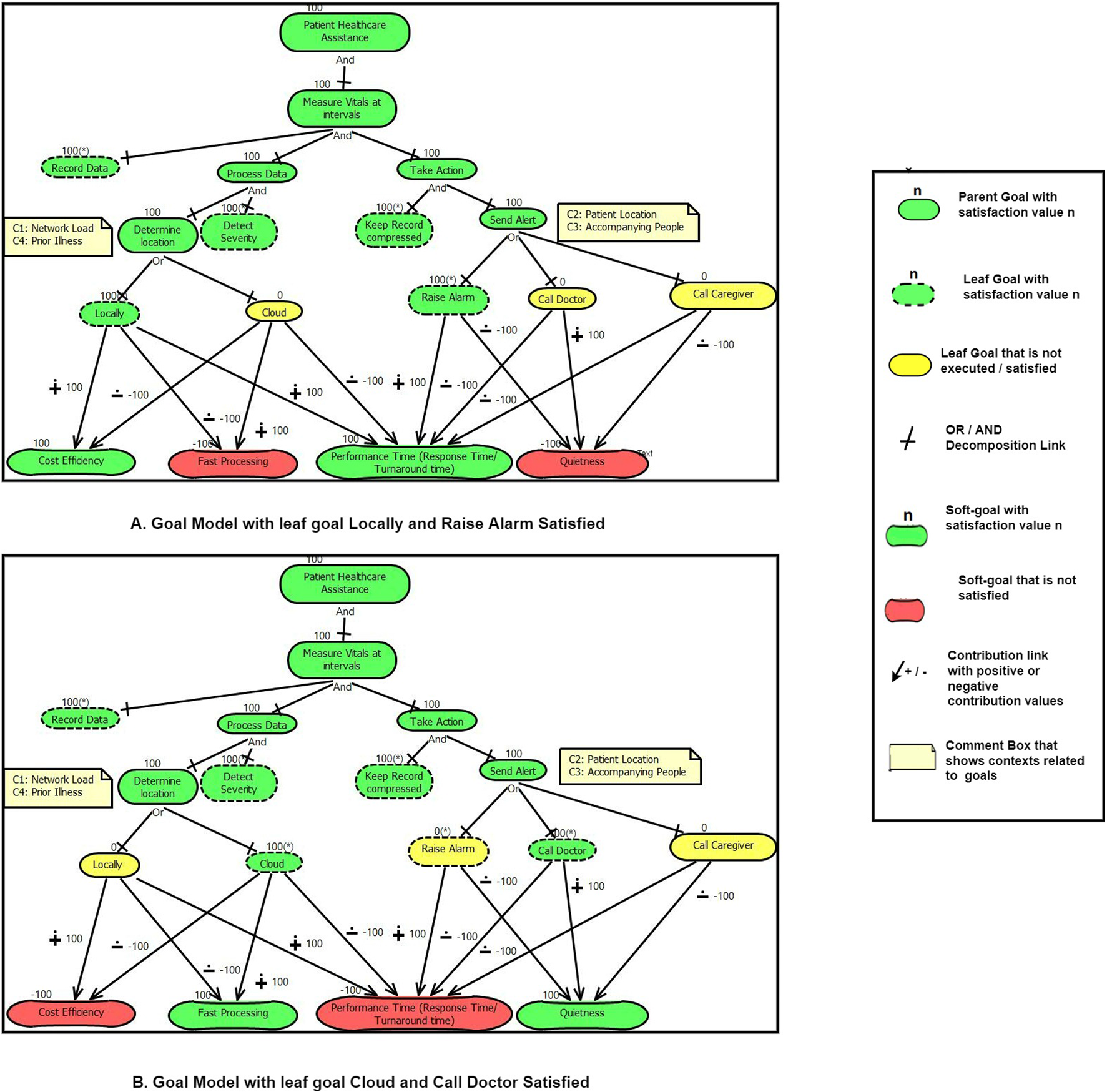 The different components of a goal model help requirement engineers and developers to visualize higher-level strategic objectives at an early phase. Contextual goal models [7] further help in associating operational contexts with goals or requirements of the system. An example case study consisting of hard and soft goals for a patient healthcare system is added in Appendix-I, and the goal model corresponding to it is available in our GitHub repository: https://github.com/ConEModel/PHA-Goal-Model.