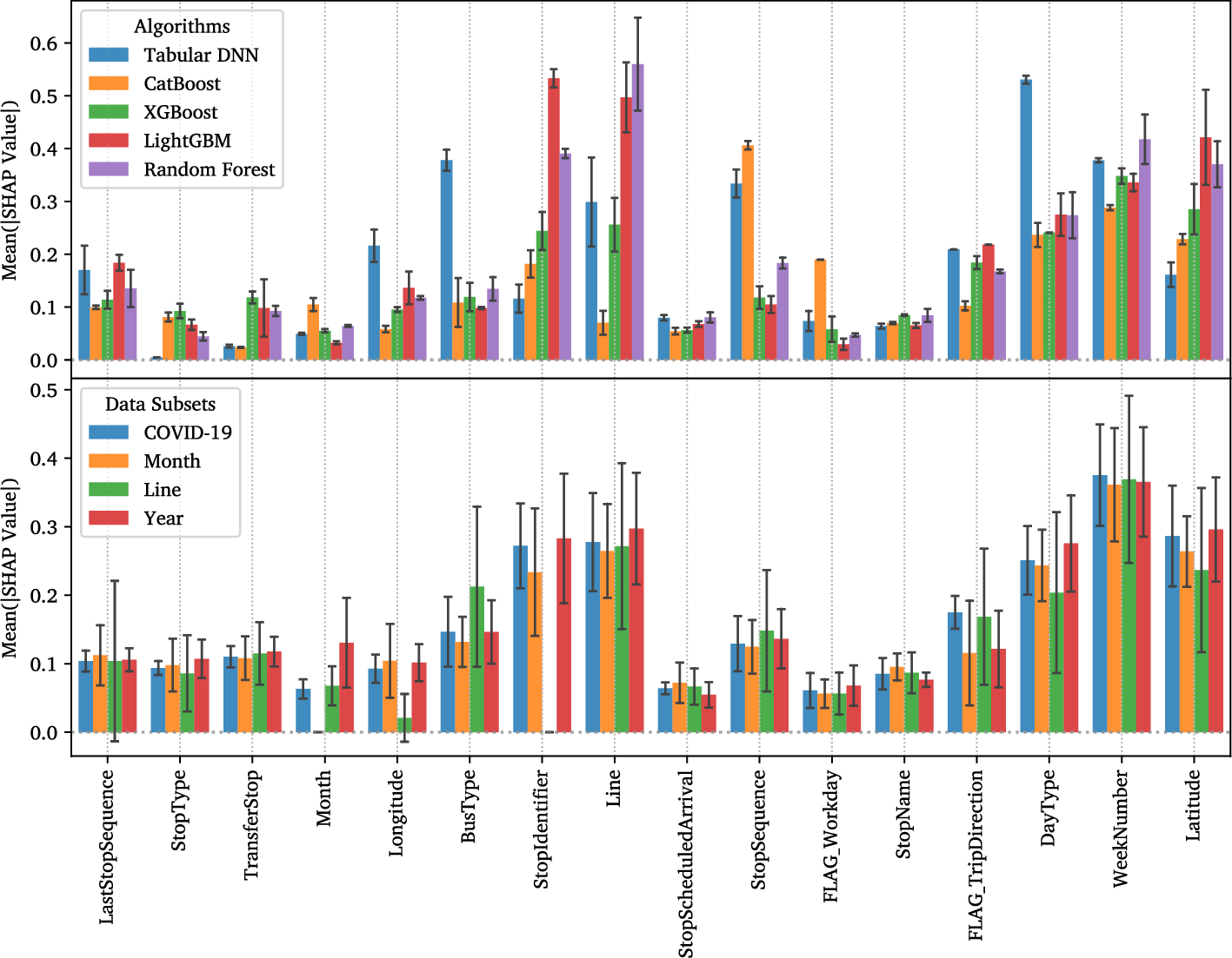 Application of explainable ML techniques, comparative evaluation of ML/DL models, analysis of input feature attributions across various algorithms, tasks, and data subsets using unique real-world data from Trondheim, Norway’s public bus transit system.