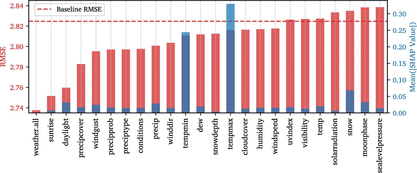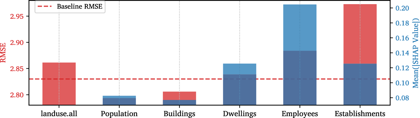 Given the limited spatial and temporal coverage of available ground truth data, which makes systematic correction of APC data unsuitable across entire networks, the focus shifts towards feature optimisation and predictive validation supported by engineered features from external, non-mobility domains, specifically weather, terrain, demographics, and land use. This approach enables indirect but robust assessment of APC reliability and predictive generalisability for stop-level modelling, while enhancing representational fidelity through exogenous feature integration.