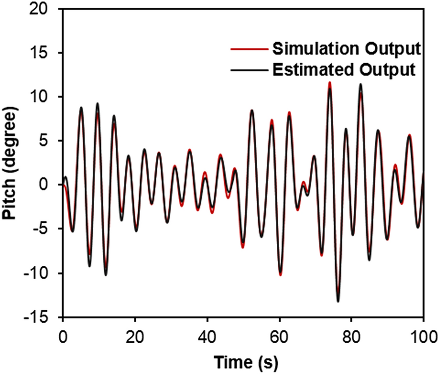 Demonstrating the effect of a foil-shaped slider on the STMD’s performance in the suppression of the buoy’s pitch deviation is the primary objective of this research. Despite the fact that a dynamic model of the system is essential for designing a controller, as long as our focus is the study of the motion of bodies without regard to the controlling forces, a kinematic model is sufficient to control a simulated system. The proposed mechanism consists of a buoy with floaters and submerged STMD is a parallel mechanism (see Fig. 2). Taking into account that obtaining a kinematic model for parallel mechanisms in coupled systems is demanding, an alternative modeling approach is considered. System identification methods are widely used in controlling the offshore structures [28, 29]. In this approach using a limited number of measurements of the inputs and outputs, a model is predicted for the system. In this regard, first, a specific range of signals are input to the system. Second, the resulting output signals are recorded. Based on the recorded inputs and outputs, an identification algorithm is used to determine the optimal parameters that govern the kinematic behavior of the system [29]. Specifications of the input signal have a crucial role in the accuracy and validity of the identified model. It is important to ensure that the input data used to determine the model covers all the range of frequencies and all amplitudes that are likely to be encountered during system operation. In order to benefit from the system identification approach, a fundamental step is the design of the experiment, either by a physical or a simulated model, to examine the inputs and outputs. In this work, a simulated model has been provided, which will be described in the “Simulation and results” section. Note that the system identification methods are only applicable to the thin rod-shaped slider due to the existence of an extra parameter (i.e., AOA of the foil) and technical limitations of the simulation in the foil-shaped slider.
