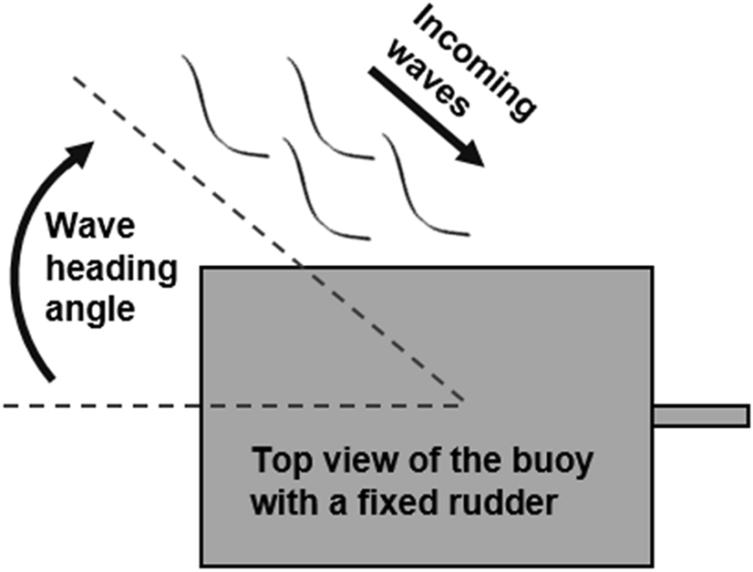 [24], which is well-known for its highly directional and quick rotational response, a rudder is fixed to the rear underside of the buoy. In the proposed structure, the buoy tends to always be heading the incoming waves. Following any change in the direction of the incoming waves, the fixed rudder causes a rotation of the buoy around its central axis to turn it towards the incoming waves. This is due to the difference between the effective area against incoming waves (see Fig. 1).
