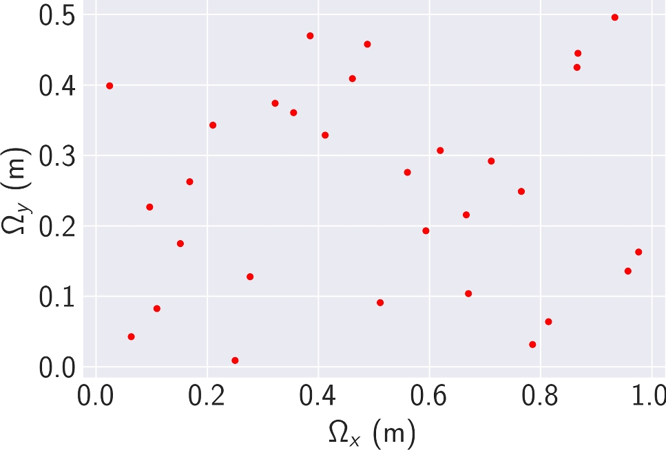 where s is the non-dimensional scalar value, D is the diffusion coefficient set to 1 (m\(^2\)/s), t denotes the time (s), while \(t_{max}\) denotes the maximum or end time of the simulation, and \(\Omega\) is the domain. For the purposes of demonstrating the ML-enhanced inverse design framework, \(t_{max}\) is set to 0.1 s and is treated as a converged state, i.e. the scalar diffusion is treated as a quasi-transient problem.