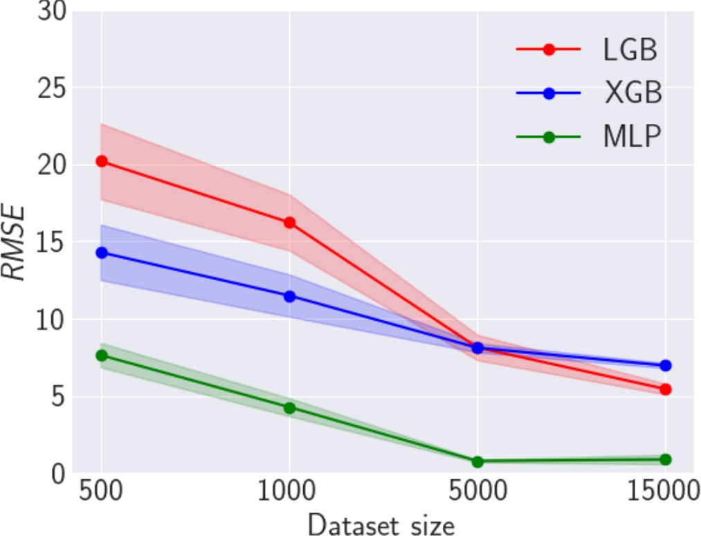 The accuracy of all trained ML models was assessed using the RMSE (Eq. (6)) since it is used to evaluate the \(\omega\) value within the ML-enhanced framework (as shown in Alg. 1).