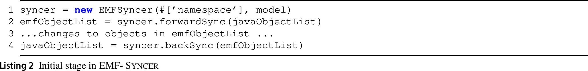 For example, the \(\textsc {EMF-Syncer\ }\) was used at the Transformation Tool Contest 2020 [8], where it was compared against state-of-the-art model-to-model transformation tools.