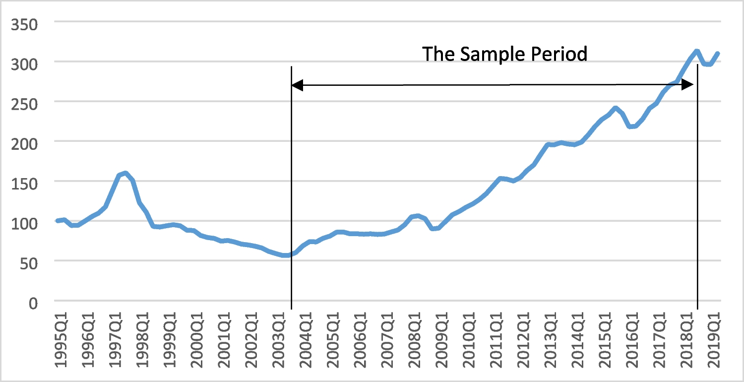 The Repeat Sales Price Index of Hong Kong. Note: The index is the authors’ calculation based on transaction data from EPRC