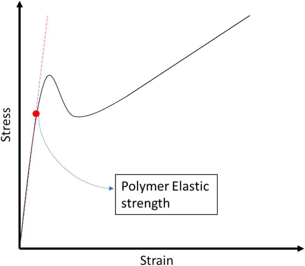Schematic representation of the Polymer Elastic Strength measurement from the stress–strain curves