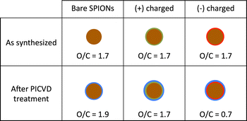 Charge effect of superparamagnetic iron oxide nanoparticles on their surface functionalization by photo-initiated chemical vapour deposition