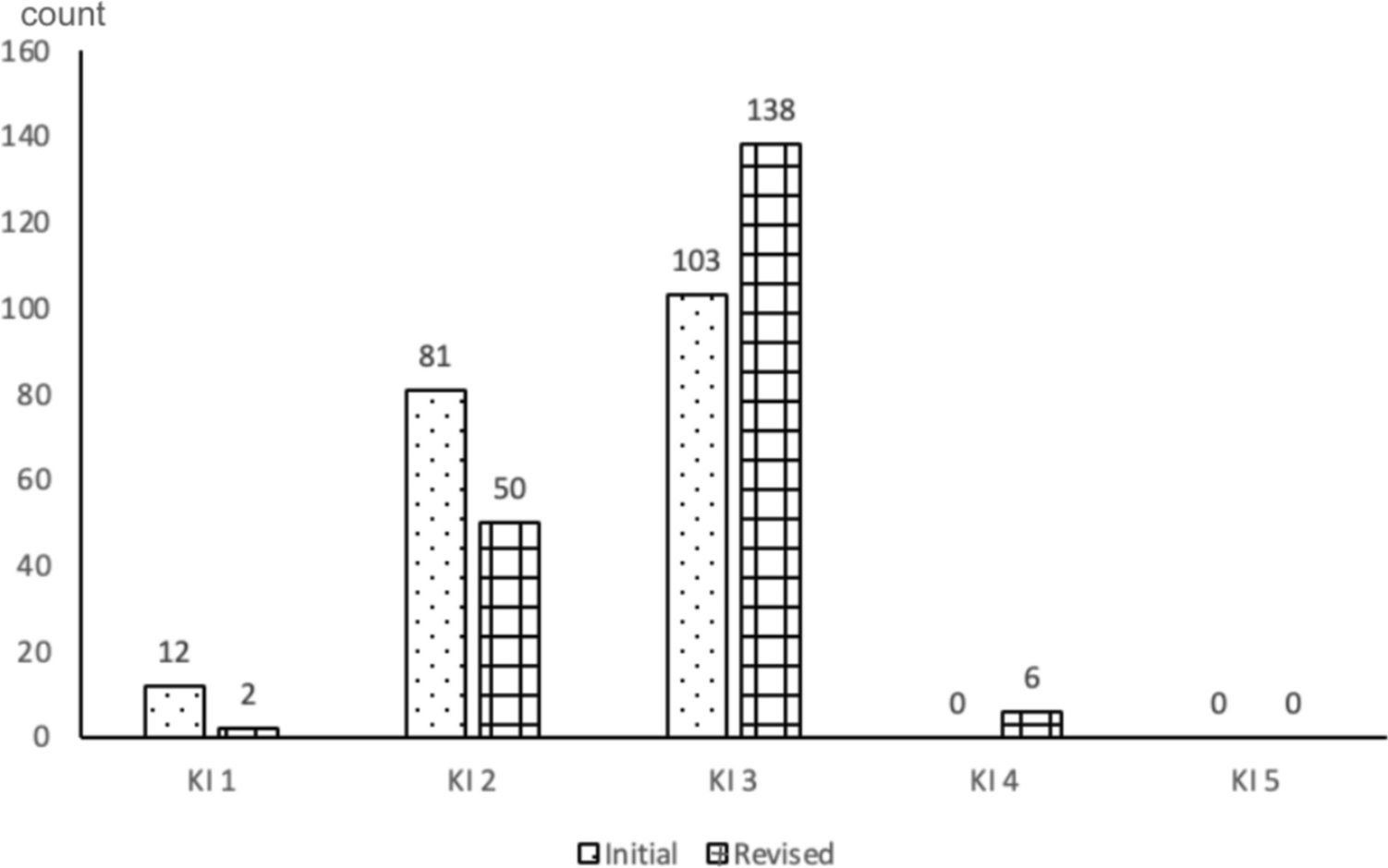 The frequencies of each KI level at initial and revised explanations