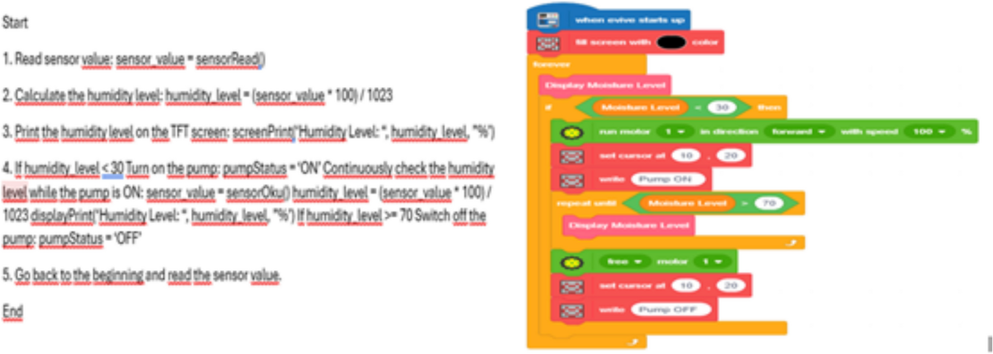 The teaching in the process was based on the design thinking cycle proposed by the Stanford model (Henriksen et al., 2017). This design learning process involves five phases: empathize, define, ideate, prototype and test. The steps implemented during the projects are given in Table 1. Figures 2 and 3 show sample design images, sketches and code structure.