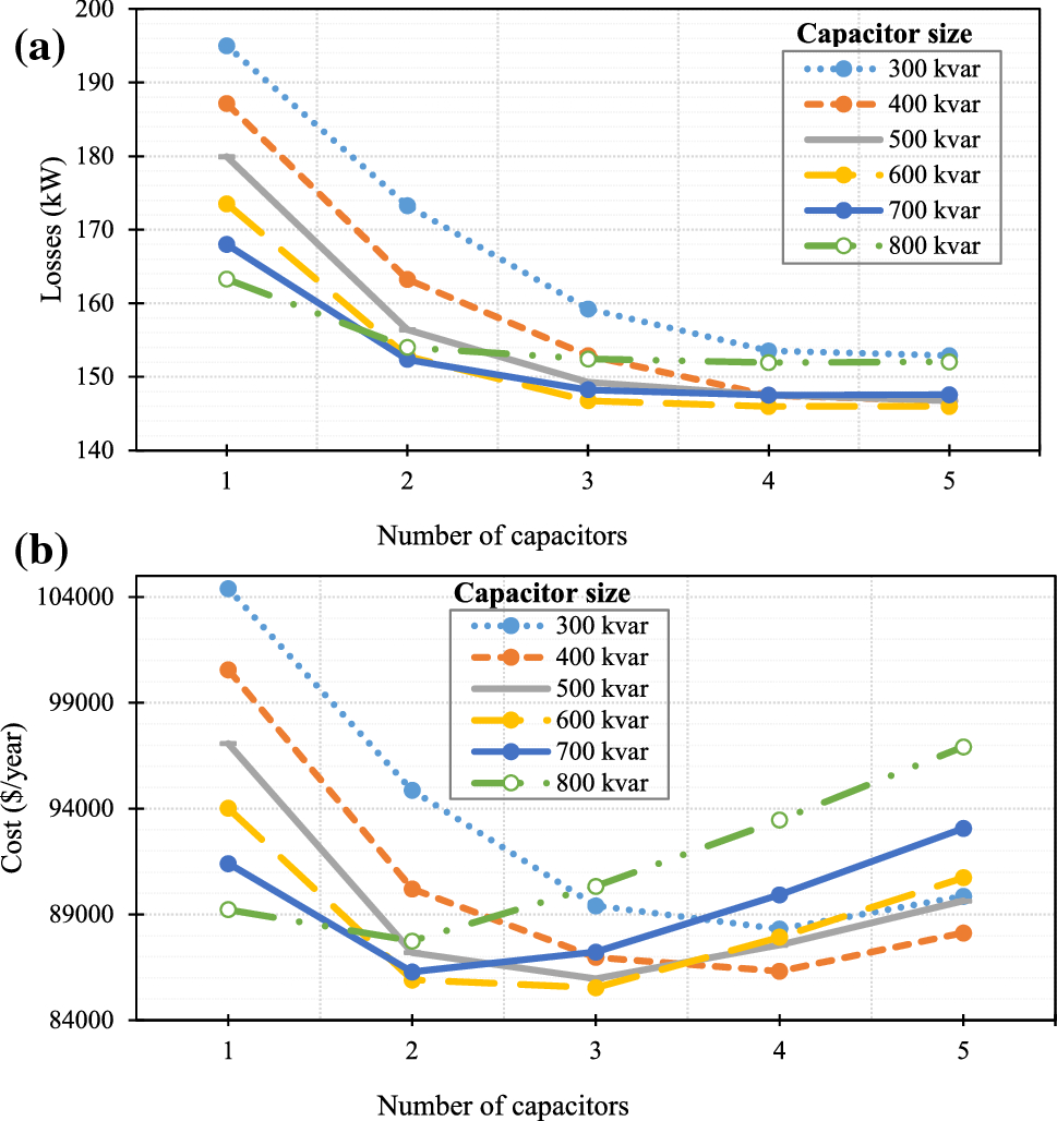 Capacitors have been considered as crucial components in distribution systems. Capacitors, when they are optimally allocated, reduce power losses, correct the power factor, improve the voltage profile, and release system capacity [1‐4]. These units also supply reactive powers locally at their connection points, and so, they strengthen the system against reactive power shortages [5, 6]. These sources of reactive power also reduce the operational stress on the traditional voltage control devices, e.g., on-load tap changer transformers (OLTC) and step voltage regulators (SVR), in which their managing systems are mechanical based [7, 8]. Furthermore, they can also release the spare capacity of the interfacing inverter of particular renewable energy sources, thereby reducing their active power curtailments [9‐11]. Besides, capacitors require lower initial and operational costs compared with other effective voltage control devices.