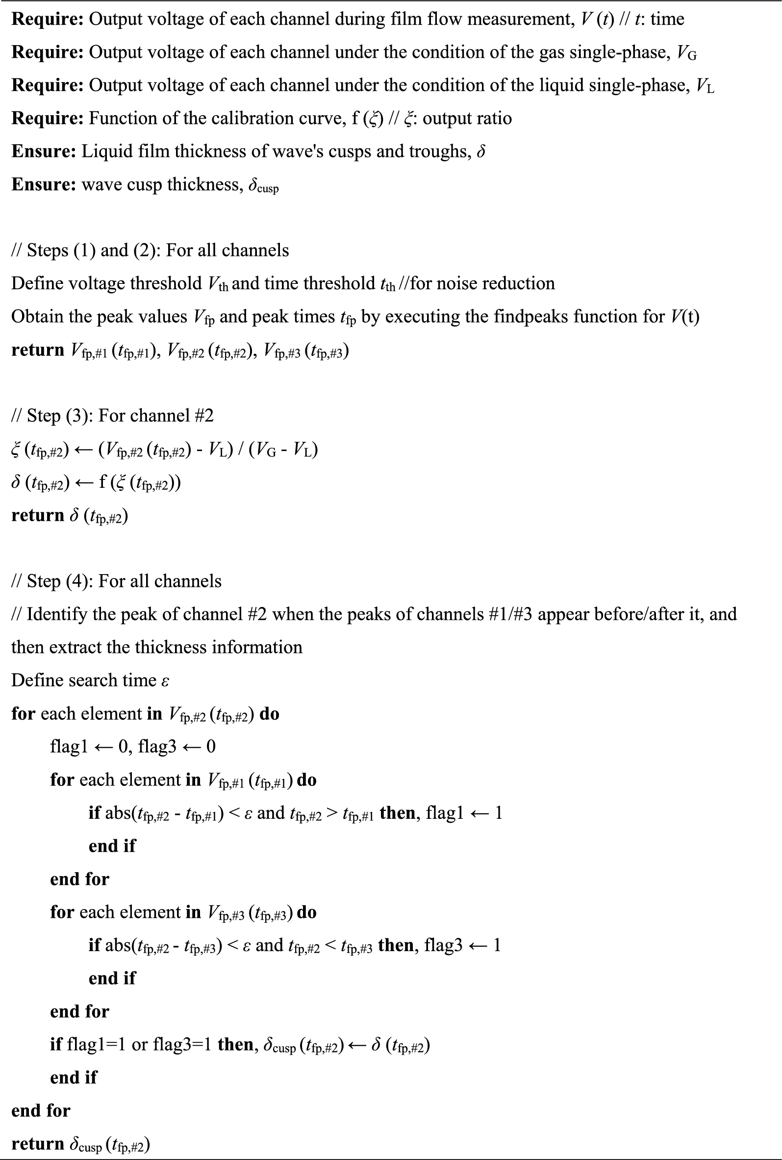 4.2.2 Detection algorithm for the wave-cusp passage and evaluation of the liquid film thickness