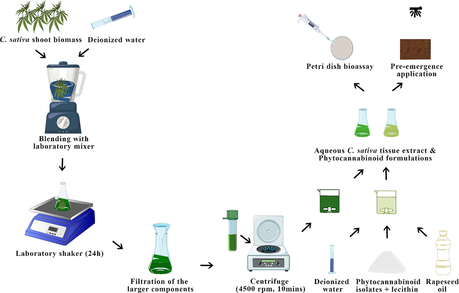 Preparation steps of aqueous Cannabissativa tissue extracts for all trials and preparation of the phytocannabinoid formulations for the greenhouse trial
