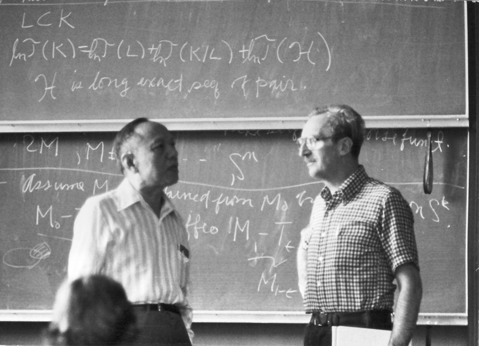 Eugenio Calabi (right) and Shiing-Shen Chern in Oberwolfach, 1976 (courtesy of Dirk Ferus). Photo ID: 7484. Autor: Dirk Ferus Quelle: Bildarchiv des Mathematischen Forschungsinstituts Oberwolfach