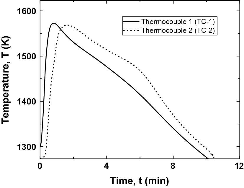 Typical temperature profiles of the sample, which were measured with TC-1 and TC-2