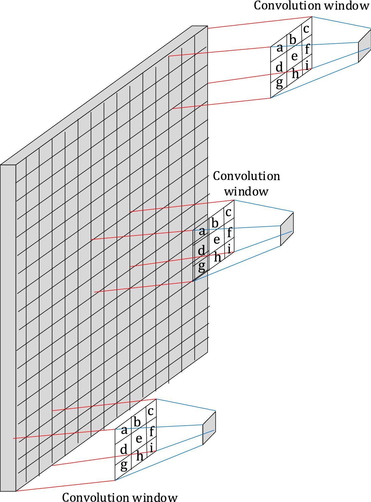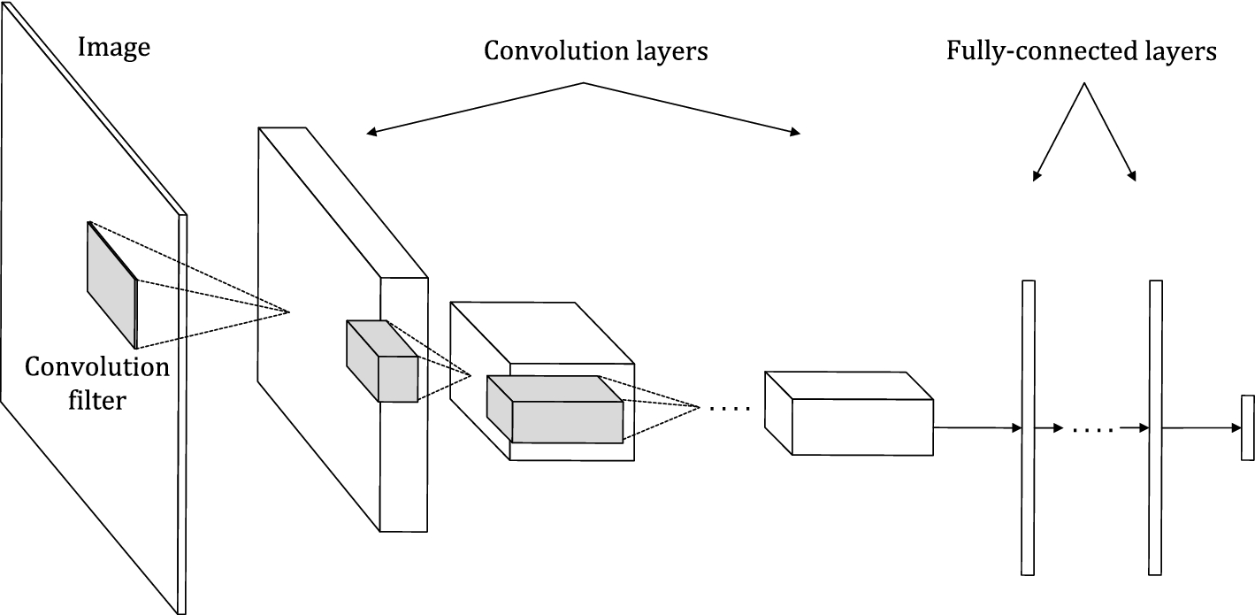 A CNN consists of convolutional layers followed by fully-connected layers (Fig. 1). A convolutional layer consists of a convolution filter, followed by a pooling filter and an activation function. A convolution filter has a number (n) of filters, with the same window size (f), sweeping over the image with a stride of sf. Pooling summarizes the outputs of neighboring groups of neurons in the same kernel map. A pooling layer has a window with the size of p that sweeps over the image with a stride of sp. A common pooling function is the maximum pooling function which outputs the maximum value in the kernel map [25] and is utilized in our model. The last fully-connected layer in CNN has as many neurons as the number of classes. Among the model’s hyperparameters are n, f, sf, p, sp and the number of neurons in fully-connected layers.
