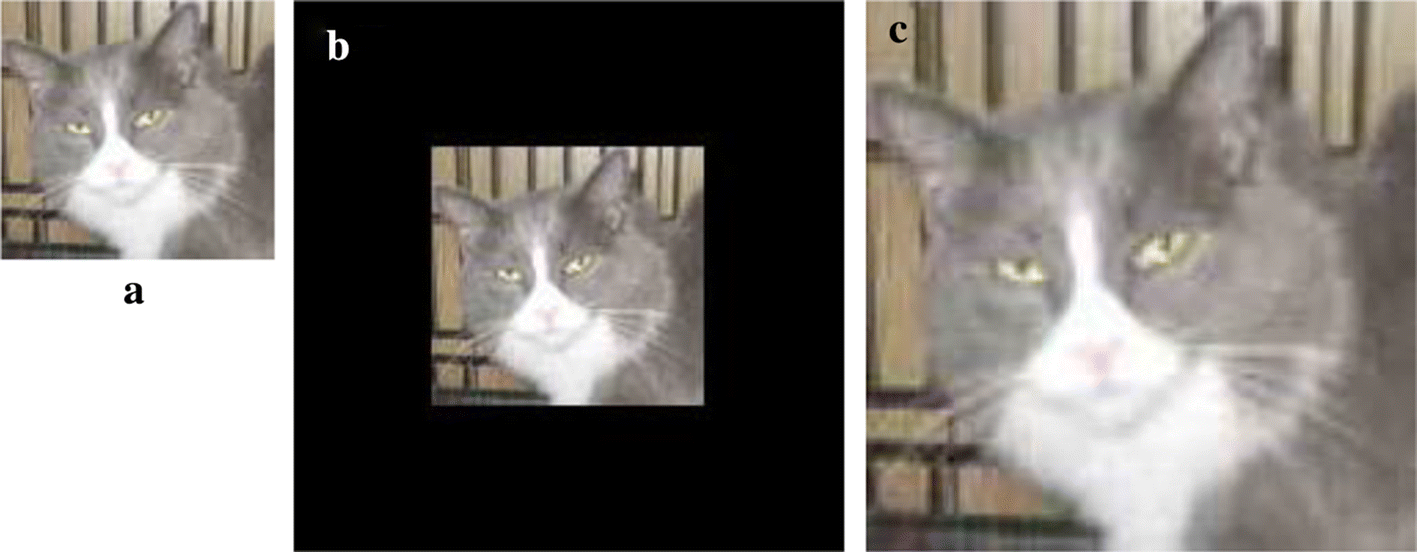 Images larger than the fixed size (in one dimension or both) could be resized down to the desired fixed size using two approaches: cropping their border pixels or scaling them down using interpolation. Both approaches are lossy. While cropping poses the risk of missing the features or patterns that appear in border areas, scaling poses the risk of deforming features or patterns across the image. Since deforming patterns is less risky than losing them, scaling is the reasonable choice to resize larger images down to the desired fixed size. Resizing smaller images up to the fixed size is the focus of this study. Zero-padding is proposed for this purpose and compared with the conventional approach of scaling images up (zooming in) using interpolation.