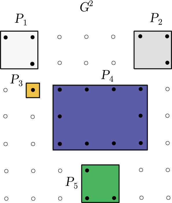 Assuming a set of k entangled ports \(P_{j} =\left\{ P_{j}^{c_{1} } ,\ldots ,P_{j}^{c_{k} } \right\} \) for a given quantum node j, each set corresponds to a different quantum node. For an overlay quantum network \(N=\left( V,{{{\mathcal {S}}}}\right) \) with \(\left| V\right| \) nodes, we defined a d-dimensional square lattice multiport multinode base graph \(G^{d} \) (\(d=2\)) that contains the sets \(P_{j} \), \(j=1,\ldots ,\left| V\right| \).