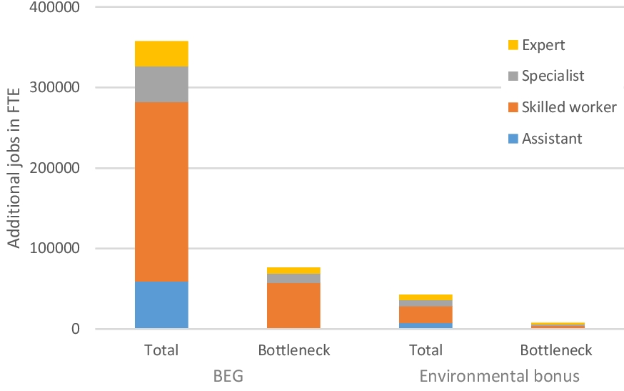 Additional jobs disaggregated to job requirements in full-time equivalents for BEG and Environmental Bonus, also accounting for bottleneck professions.