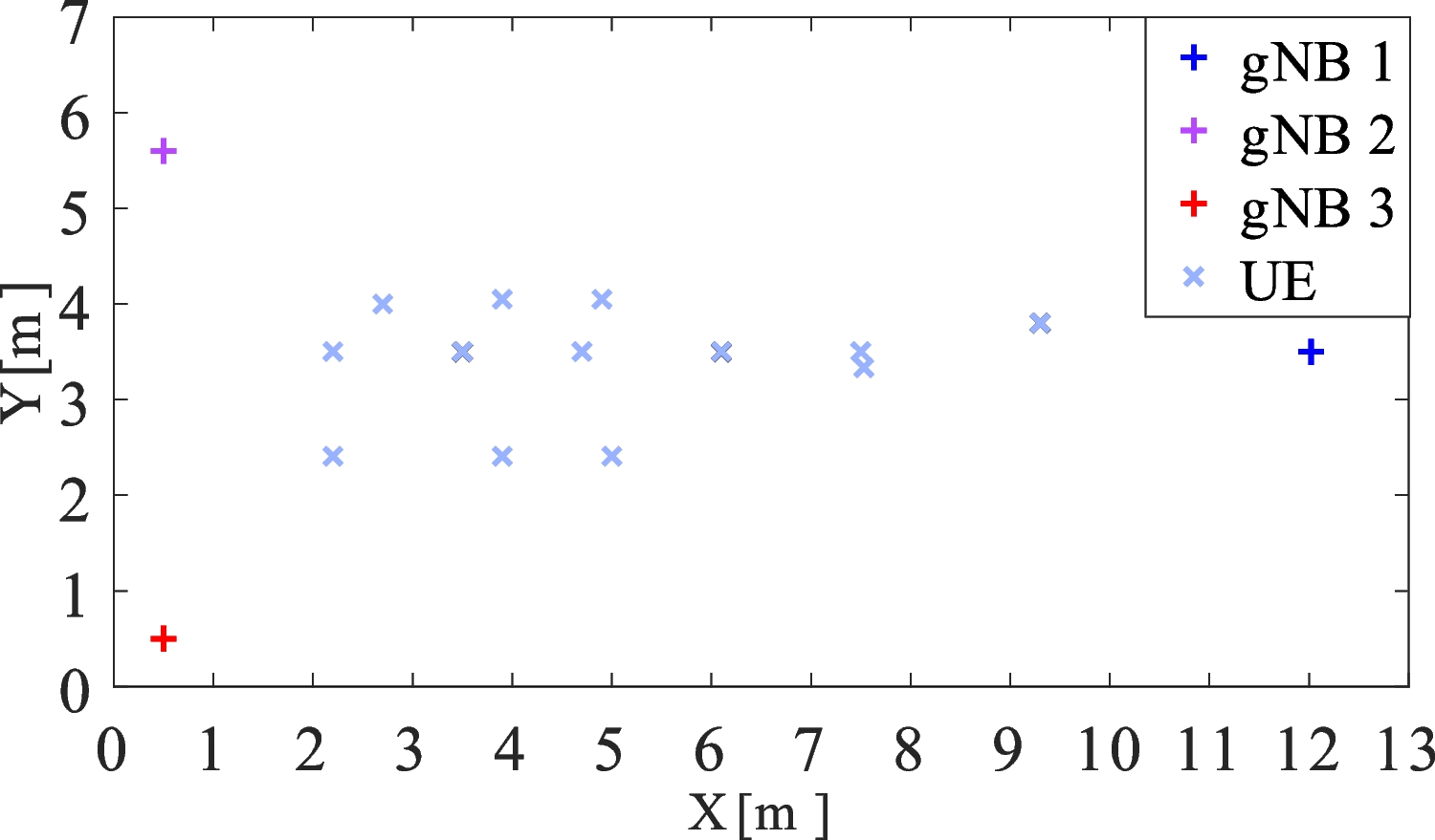 Multi-link approach experimental area with gNBs and UE positions