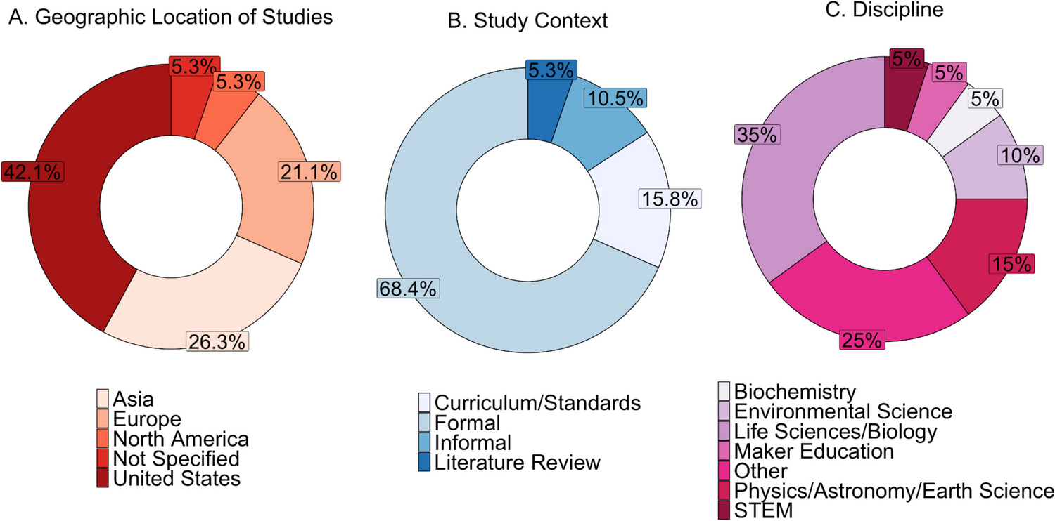 Our study highlights the utility of ENA as a research method in science education. However, due to our exclusion criteria, our sample only consisted of 19 studies. Several studies were excluded due to not falling into the realm of science education, STEM education, being engineering education, or not providing network visuals. While fields such as engineering, technology, and mathematics are distinct from science, they do tend to overlap often in research literature. Perhaps a broader focus on STEM education would reveal a new pattern of ENA use.