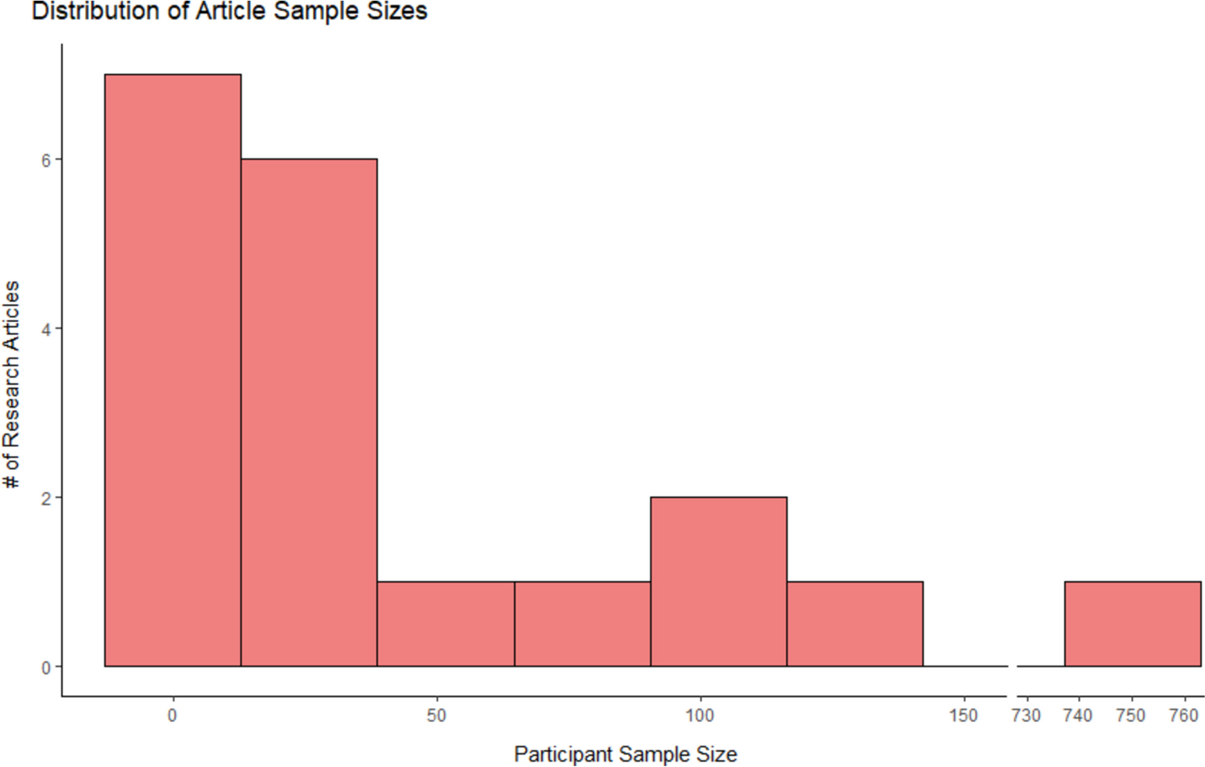 Number of research articles by participant descriptions. Note that some studies included multiple samples and therefore are counted twice; therefore, the total sum of studies presented here is greater than 19 (> 100%) of the sample