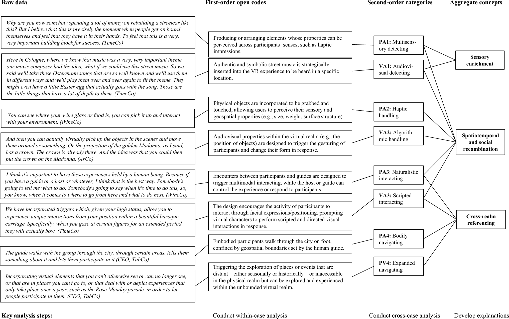 Our study is not without limitations. First, we caution that the ability to generalize from our research is limited. The transferability of the findings from our study is, amongst others, constrained by the limited heterogeneity of experiential consumer offerings (experiential consumer offerings cover a wide range of types, such as adventure activities, aesthetic cultural experiences, or meditation workshops). Furthermore, all of our cases were located in Germany, and we were not able to cover the broad range of potential immersive systems configurations that could be used for such offerings (e.g., Dincelli and Yayla 2022). Still, all our cases faced a similar challenge and common goal: how to design activities that leverage properties of the virtual realm (produced by immersive systems) and merge them with those created in the physical realm to provide an experience that crosses what participants would be able to perceive or do in either realm alone. Thus, our abstracted theoretical concepts may be useful for analysis and explanation in other settings that involve alternative experiential themes, different forms of immersive systems mediation, or different geographic locations. It is important to note, however, that their usefulness remains an empirical question.