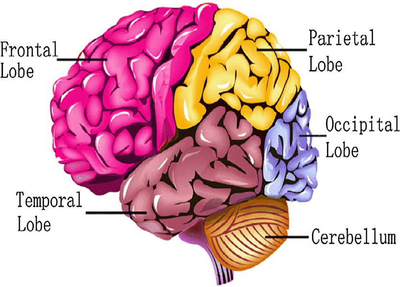 The cerebellum, cerebrum, and brainstem are the three major components of the human brain. The cerebral cortex, brain nucleus, and limbic system make up the cerebrum. Cognitive and higher-level emotional functions are principally controlled by the cerebral cortex. It is found on the human brain’s outermost layer, with a thickness of around 1-4 mm, and is primarily made up of grey matter, with white matter below [40]. The brain is divided into left and right hemispheres by a central sulcus in the middle. As shown in Fig. 3 [6], the Frontal Lobe, Occipital Lobe, Parietal Lobe, and Temporal Lobe are the four areas of the cerebral cortex. The functions of these four areas are distinct. The frontal lobe is placed before the brain’s central sulcus. It is in charge of higher cognitive activities. Prefrontal lobe, frontal motion area, and primary motion area are all part of it. They are mainly in charge of planning, thinking, and physiological functions associated with a person’s emotions and needs. Behind the central sulcus and just ahead of the occipital fissure is the parietal lobe. It is a sensory centre of the highest level. It is primarily responsible for the integration of somatosensory information as well as the reaction to spatial information such as pain, pressure, temperature, taste, and touch. This area is also linked to logical and mathematical thinking. Under the lateral fissure is the temporal lobe, with the frontal lobe in front, the occipital lobe in the back, and the parietal lobe above. It is primarily in charge of processing auditory and smell information, and is associated with emotion and memory (mental activities). Finally, the occipital lobe is situated behind the occipital sulcus, in the back of the hemisphere, and is mostly in charge of processing vision-related information. It also has to do with a person’s memory, behavioral perception, and abstract conceptions
