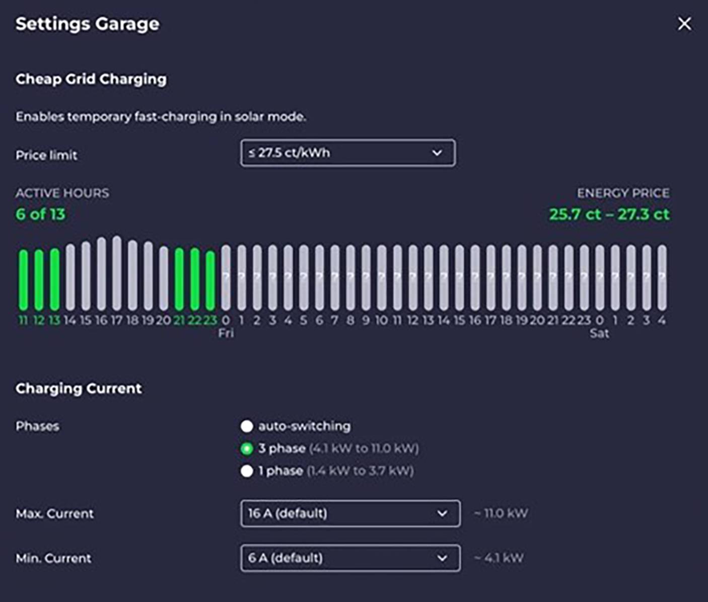 Interface des dynamischen Energiemanagements für preisoptimiertes Laden (via Webbrowser)