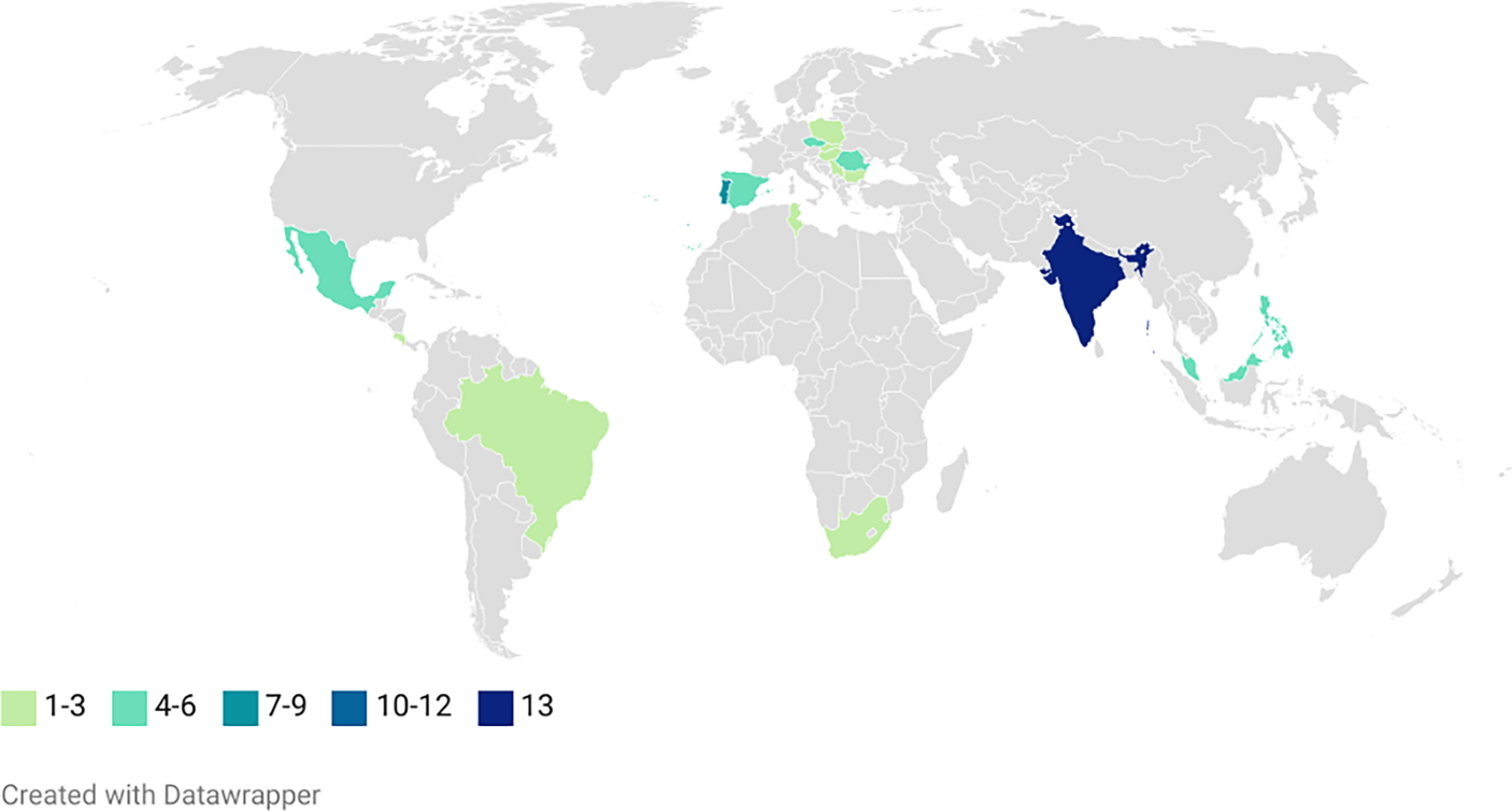 Insgesamt lässt sich sagen, dass sich die Nearshoring-Standorte gleichmäßig auf elf Länder verteilen. Dies steht im Kontrast zum Offshoring, bei dem eine hohe Konzentration an Unternehmensstandorten in einem einzigen Land vorherrscht. Das beliebteste Land ist Indien mit 42 % aller IT-Offshoring-Standorte. Insgesamt haben 13 Unternehmen einen IT-Offshoring-Standort in Indien. Für das Land spräche laut den Interviewpartnern und -partnerinnen „die schiere Anzahl an potenziellen Mitarbeitern“. Mit deutlichem Abstand folgen Malaysia und die Philippinen, wobei jeweils vier Unternehmen in diesen Ländern vertreten sind, was einem Anteil von 13 % entspricht.