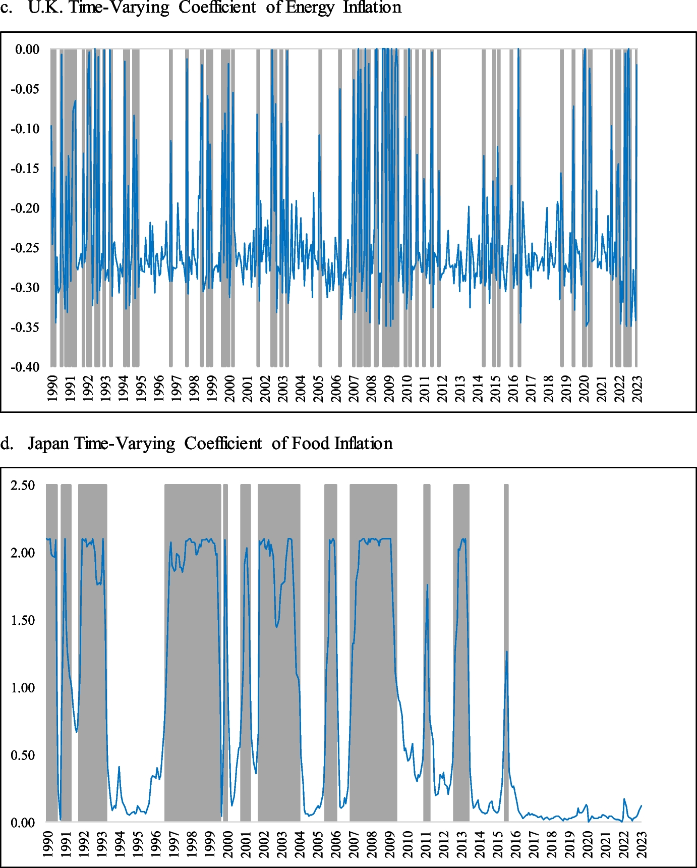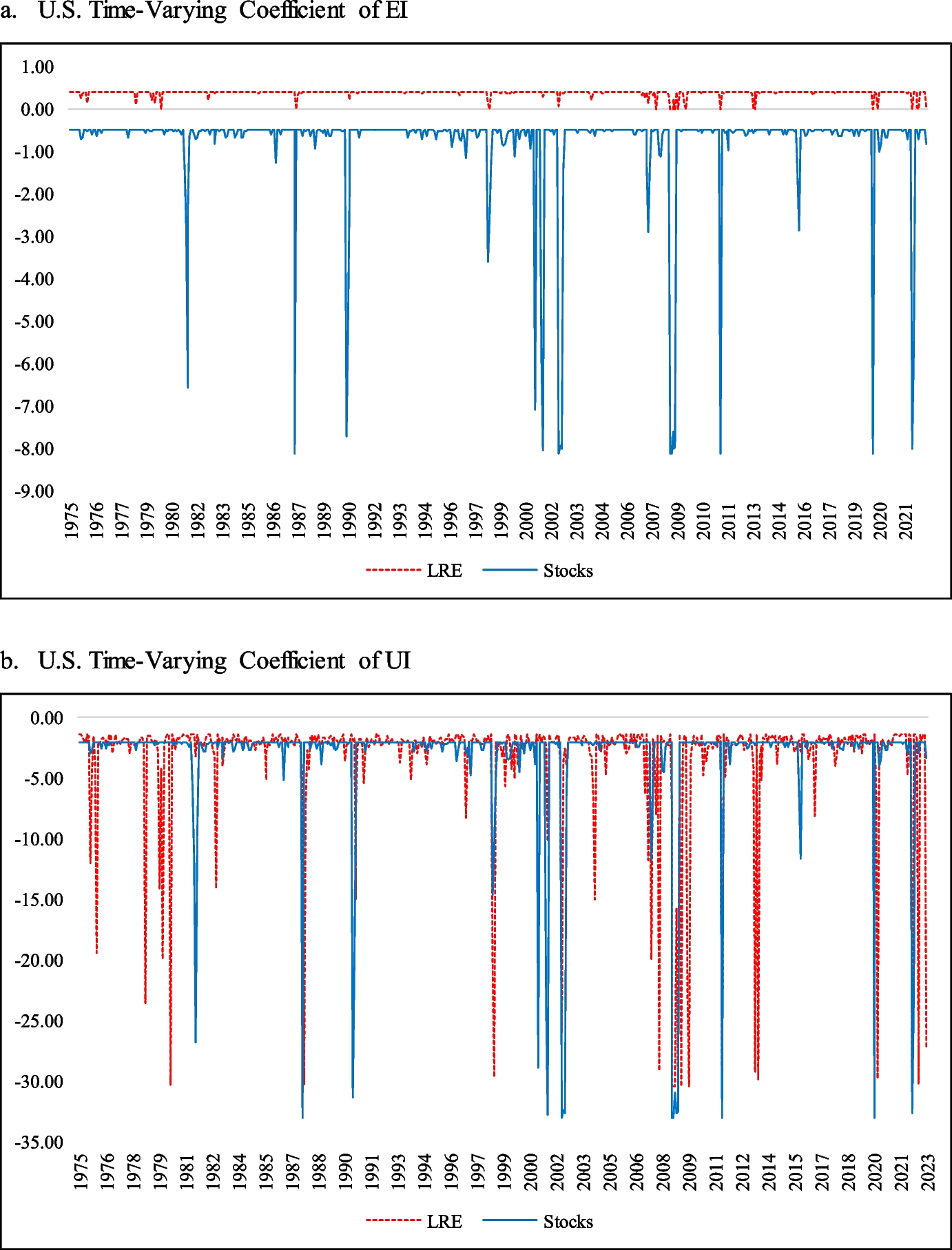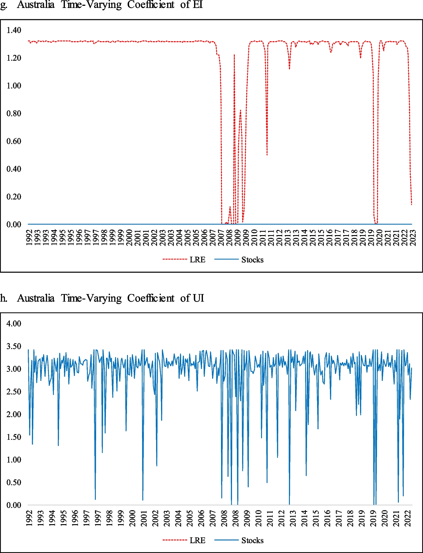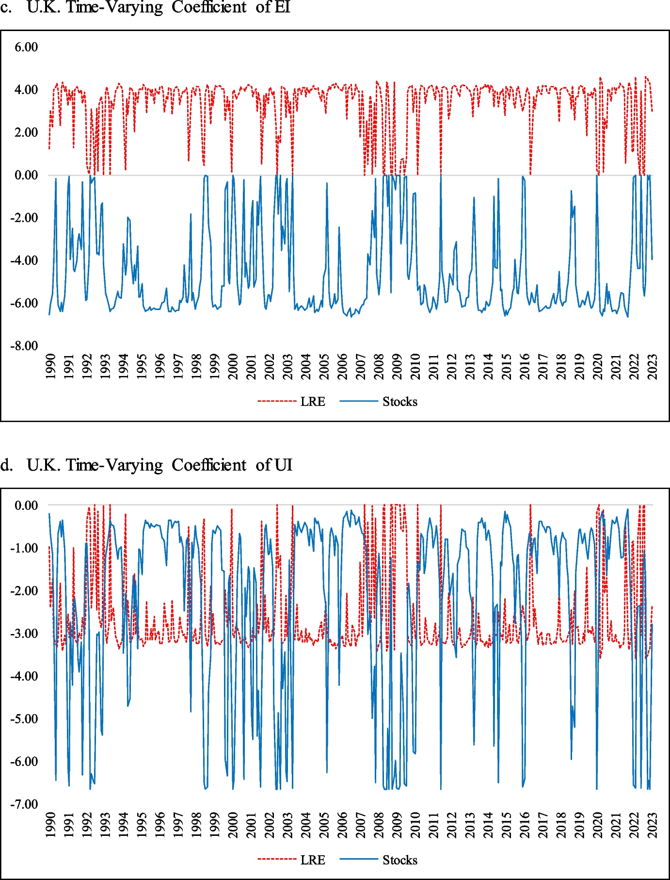 Lee et al. (2011) investigate the long-run inflation-hedging properties of real estate stocks in East Asian developing countries. They report that LRE was not capable of hedging inflation in the long run. Fehrle (2023) investigates the hedging ability of equity and housing against inflation. He concludes that the hedging ability is strongly time dependent. Further, he notes that housing is superior, albeit only marginally, to equity in terms of hedging against inflation capability. The study by Fang et al. (2022) decomposes inflation into energy, food, and core components and finds that these components have markedly different properties concerning asset pricing. They demonstrate that traditional inflation hedging instruments such as stocks, currencies, commodities, and REITs only succeed in hedging energy inflation, while in the case of core inflation they tend to be less successful. Following Fang et al. (2022), Connolly and Stivers (2022) find the existence of a complex relationship between REIT equity returns. The authors establish a strong negative relationship during phases of weaker economic growth, such as periods in the 1980s and early 1990s when stagflation was more of a concern.