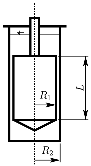 Probably the most common measuring system in a rotational rheometry is the system of concentric cylinders. Figure 2 shows the geometry of the concentric cylinders defined according to the DIN EN ISO 3219 standard. This geometry is based on the use of a narrow gap, which allows the application of a constant value of the shear rate and the corresponding shear stress across the gap. This NGC (Narrow Gap Couette) geometry is currently the international standard for measuring the flow properties of polymers and other non-Newtonian fluids.