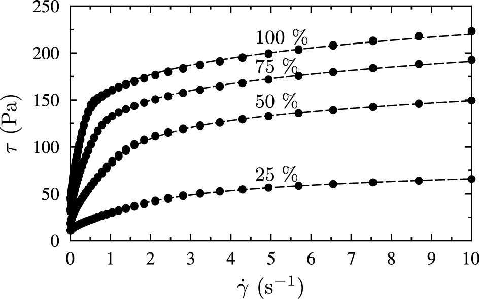 which uses three parameters to describe the flow behaviour. The yield stress \(\tau _0\) is supplemented by a pair of parameters K and n expressing the consistency coefficient and the flow behaviour index, respectively [3, 4, 8].