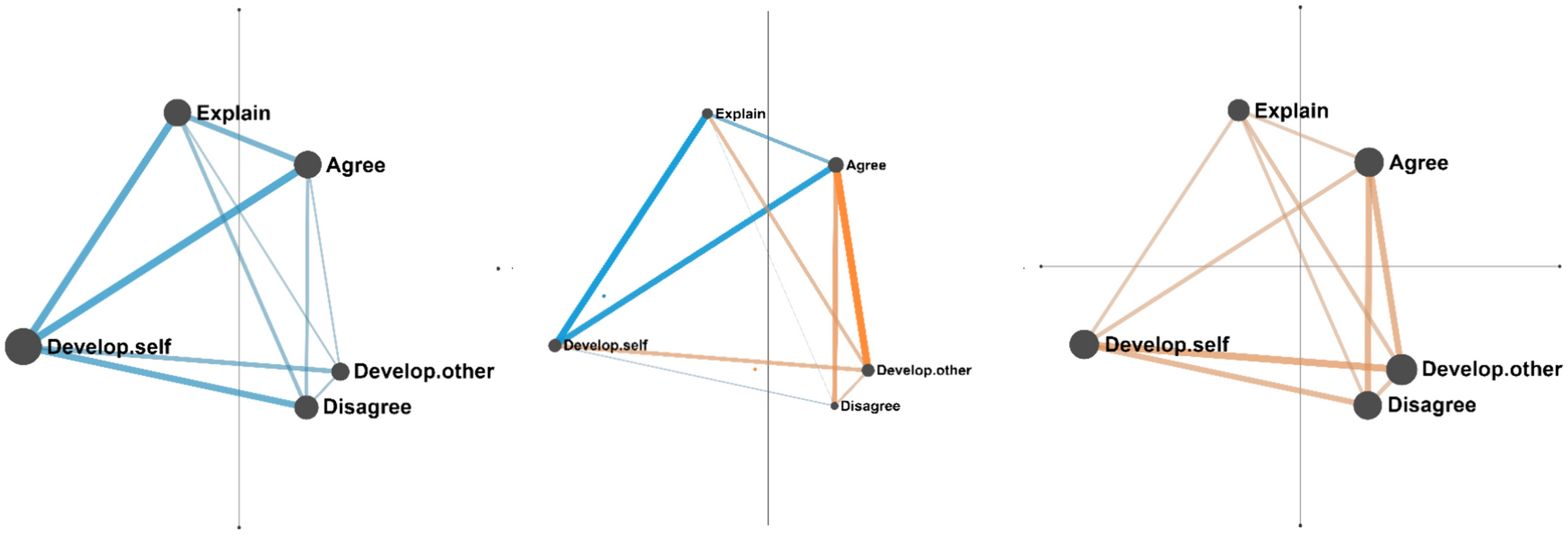 Hence, we suggest this could be viewed as a form of self-oriented Exploratory Talk, as disagreements led to the development of new ideas, but these were mostly develop-self rather than develop-other (Fig. 2, center).