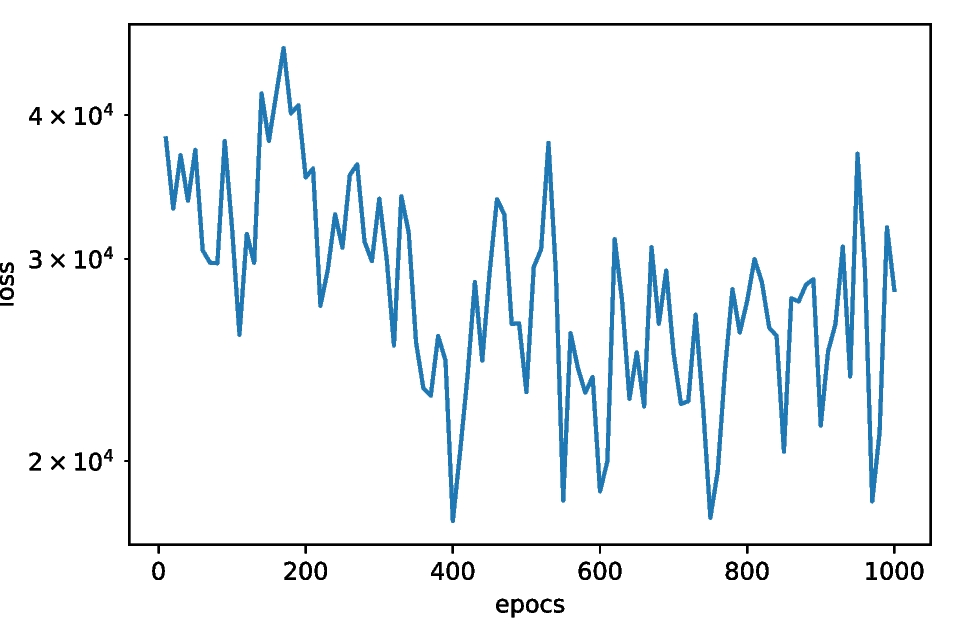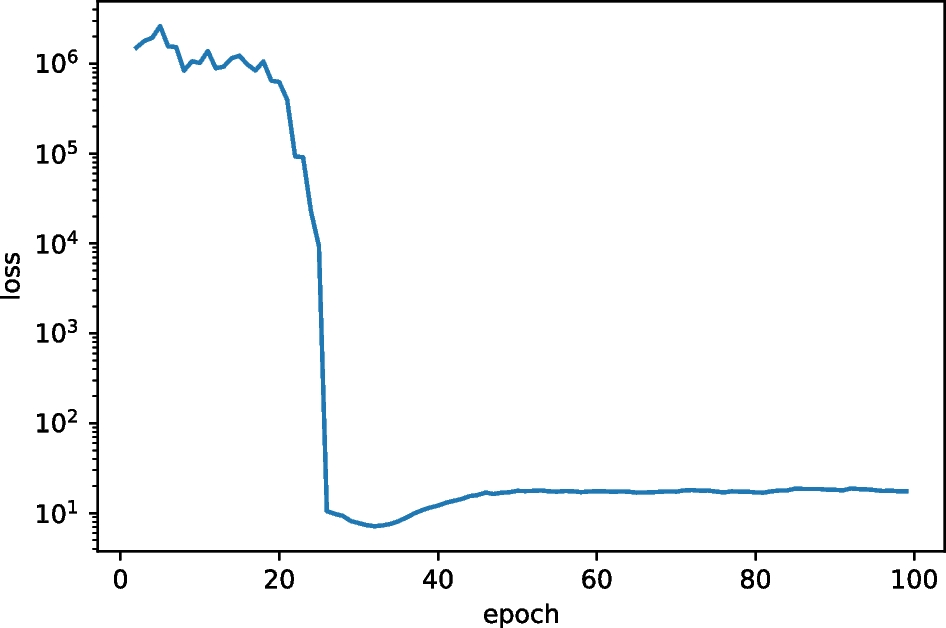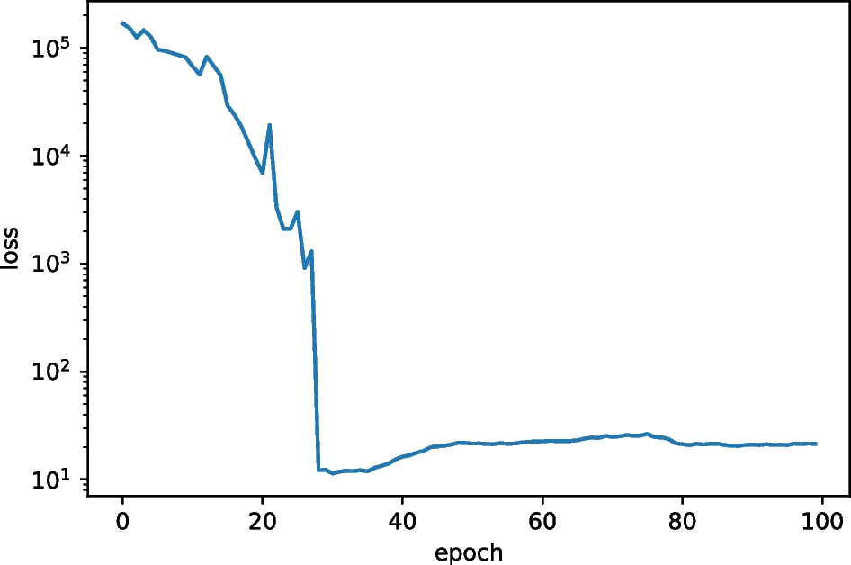 Figures 6, 7, 8, 9, 10, 11, 12, 13 and 14 show the losses of all models for each epoch. The evaluation losses are plotted in these figures. The loss values plotted in these figures were calculated using an additional 1,000 simulations only for evaluations. Figure 6 shows the results for the baseline (TPE: Optuna). In this figure, a type of overfitting of the training samples can be observed. In contrast, in Figure 7, the DDPG-based model (DDPG + AC + FNNA + SF) exhibits a slower convergence. Unlike these two models, according to Figure 11, the SAC-based model (SAC + FNNA + SF) exhibits faster and more stable convergence in its loss. In addition, from these figures, we can assume that the SAC-based model outperforms other models. Moreover, as shown in Figures 11 – 14, we can observe that the SF leads to faster convergence.