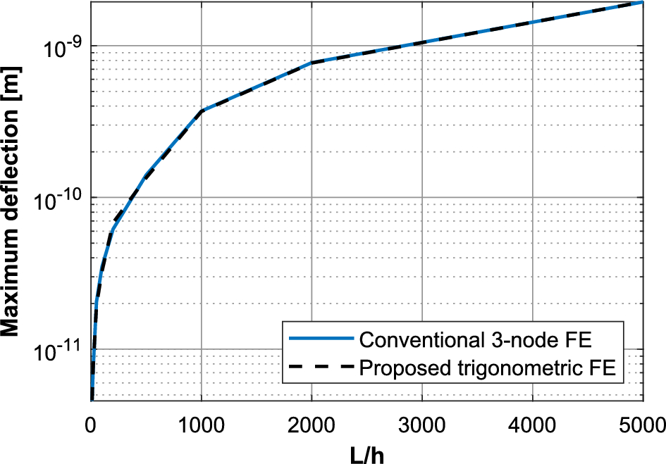 After this, a convergence investigation is accomplished for the estimation of the 20th natural frequency of the beam, following the procedure described in [47, 48]. The absolute error between the numerical and analytical 20th natural frequency and the respective convergence rates are presented in Table 3, for the conventional 3-node FE and the proposed trigonometric FE. It can be observed that the proposed trigonometric FE yield lower absolute errors in every mesh case, and the convergence rates of the two models are in a very close value range.