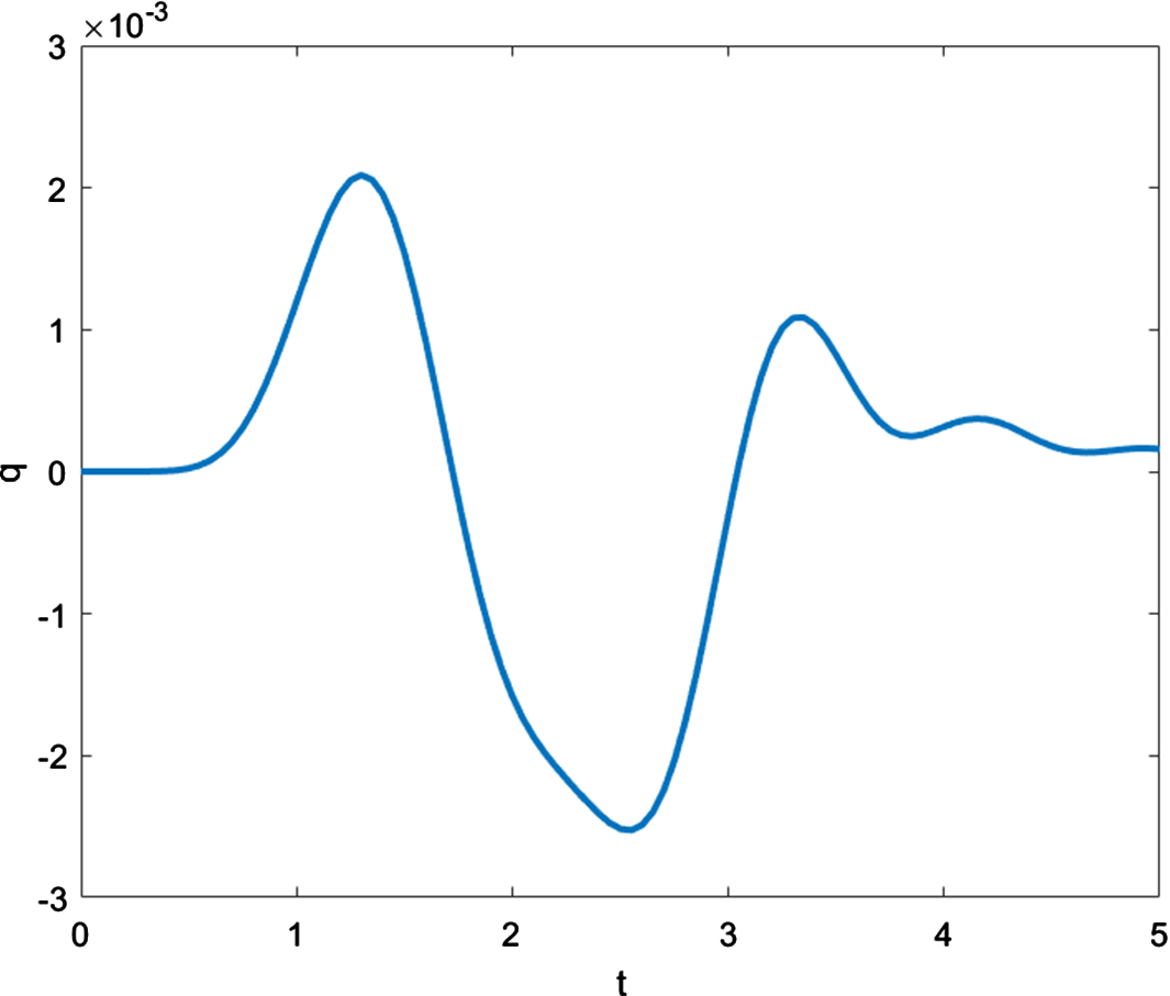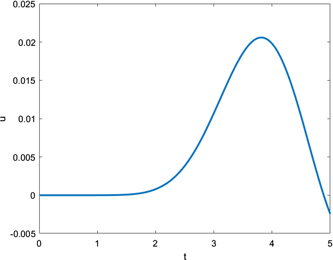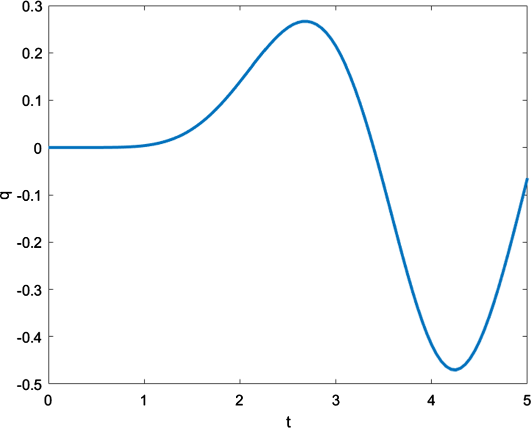 Figures 4, 5, 6 and 7 illustrate the behavior of the solution functions in the time interval \(0 \le t \le 5\).