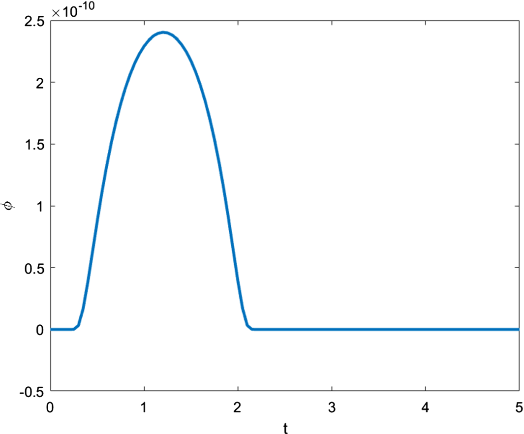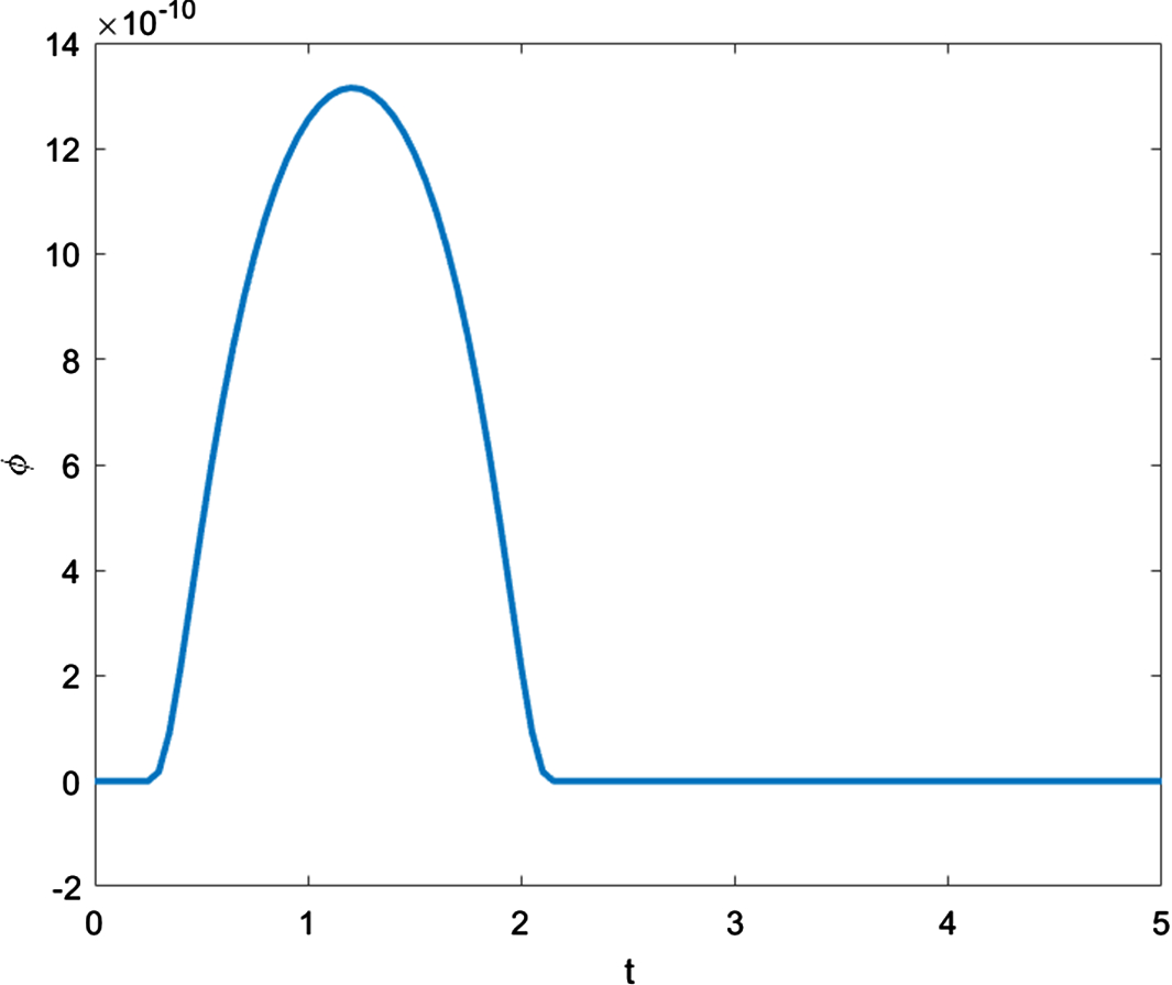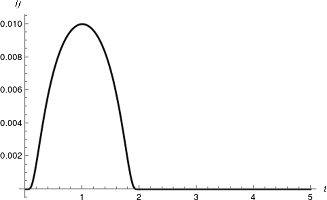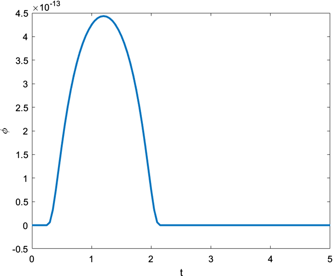 For all the following numerical calculations for the nonlinear problem, the initial conditions are set to zero. We consider the propagation of a continuous heating boundary regime in a half-space \( x \ge 0\), with prescribed finite-support temperature at the boundary of the form: