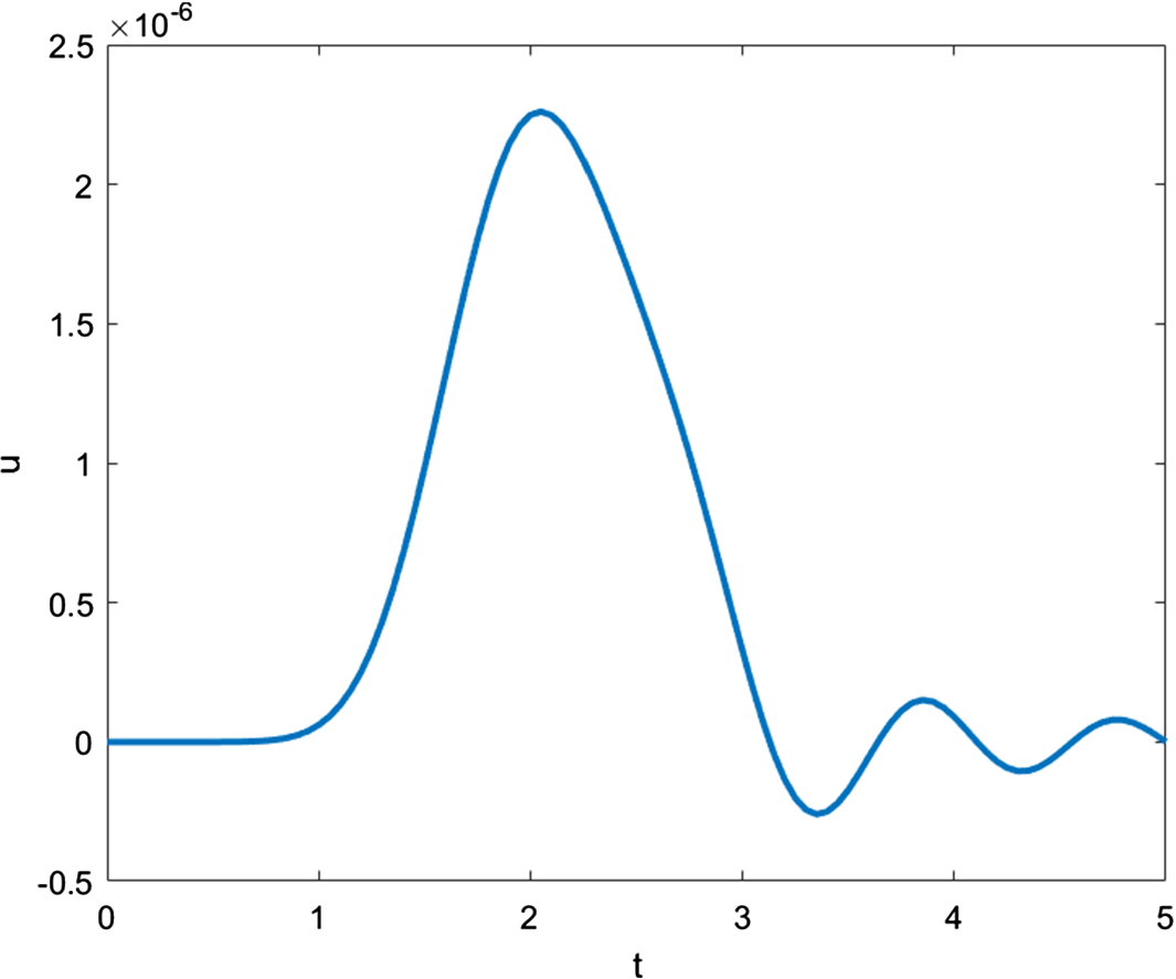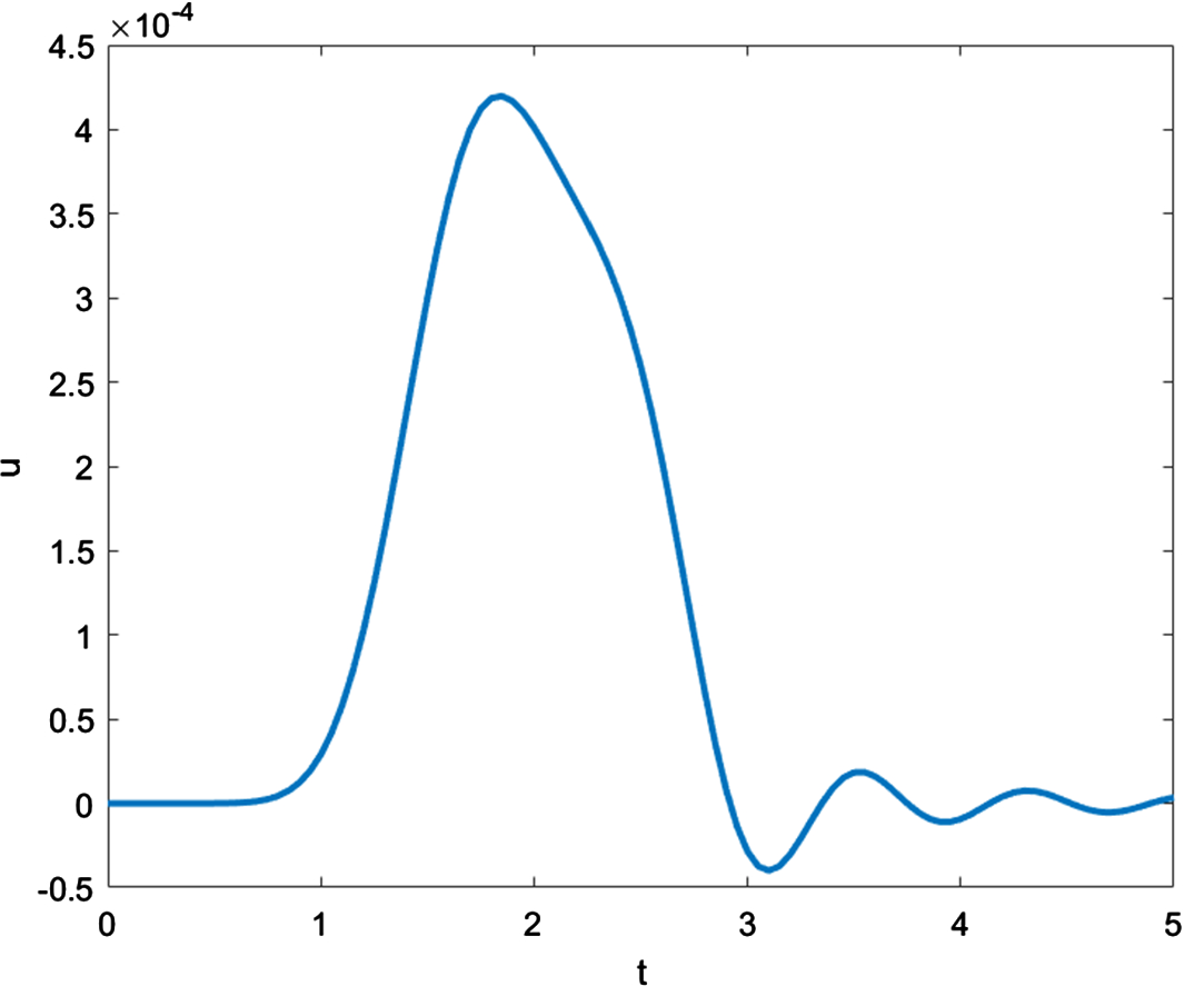 Distribution of displacement at location \(x=0.5\) as function of time for Case I